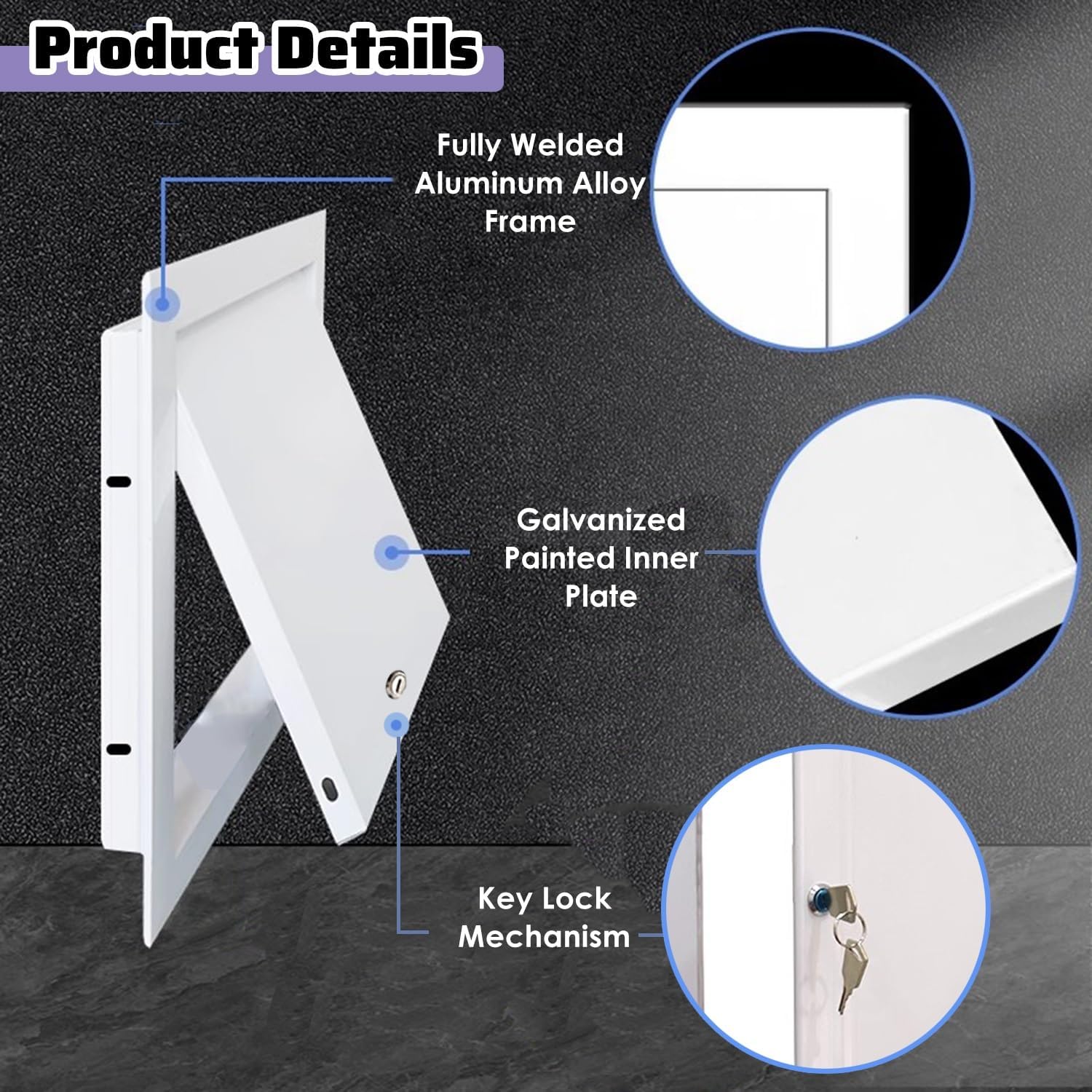 Discover the ultimate solution for concealing access points in your home or office with our Hidden Access Door. Designed to keep your space organized and aesthetically pleasing, this access panel is perfect for various applications, including plumbing, electrical wiring, and communication setups. **Product Specifications:** - **Name:** Hidden Access Door - **Material:** Durable Aluminum Alloy Frame & Galvanized Steel Panel - **Color:** Sleek White - **Dimensions:** Customizable Width (4" to 19 3/4") and Height (4" to 23 5/8"), with a 1" depth to fit your needs - **Installation:** Wall or Ceiling Mounted - **Surface Finish:** Can be painted or wallpapered to match any interior design **Key Features:** - **Effortless Maintenance:** The smooth surface is easy to clean and maintain, ensuring long-lasting appeal. - **Versatile Design:** Our access door complements various decor styles, making it a seamless addition to your space. - **User-Friendly:** Open the door easily without tools, providing quick access for emergencies or routine checks. - **Robust Build:** Crafted with high-quality materials, the door offers excellent toughness and resistance to wear and tear. - **Secure Locking Mechanism:** Enjoy peace of mind with our unique locking feature, keeping your access points safe when not in use. **What’s Included:** - 1 x Hidden Access Door (with screws for installation) **Installation Tips:** - Ensure a flat installation for the best fit. - Measure carefully to determine the exact dimensions needed for your access hole. - Minor dimension variations may occur due to manual measurements. **Customer Support:** We are committed to providing the best quality and service. If you have any questions or need assistance, reach out via email, and we’ll respond within 24 hours. Upgrade your space with our Hidden Access Door, where functionality meets style!