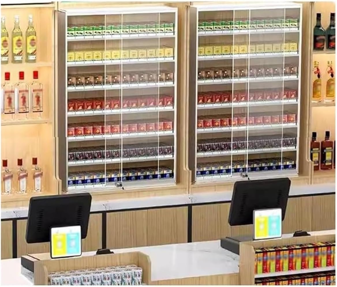This locking display case is the perfect solution for showcasing your products, tailored specifically for cigarette dealers. Designed as an essential store display cabinet, it enhances your retail environment while providing security and style. Made from transparent tempered glass, this case features an impressive light transmittance rate of up to 98%, allowing your items to be displayed in their full glory. Its sleek design complements a variety of store aesthetics, making it a versatile addition to your establishment. Product Highlights: - **Versatile Use**: Ideal for convenience stores, supermarkets, retail shops, coffee houses, bars, and shopping malls. - **Efficient Display**: This cigarette display rack effectively highlights your products, making it easier to attract potential customers and boost sales. - **Sliding Glass Door**: The user-friendly sliding door design provides quick access to products, ensuring a seamless shopping experience for your customers. - **Enhanced Security**: The cabinet features a locking mechanism with a key, offering peace of mind and protecting your merchandise from theft. Whether you are looking to elevate your store's presentation or ensure the safety of your products, this cigarette display holder is an excellent choice. Its combination of functionality and aesthetic appeal makes it an invaluable asset for any retail environment. Invest in this display case today to enhance your business's visibility and security, helping you create an inviting atmosphere that keeps customers coming back.