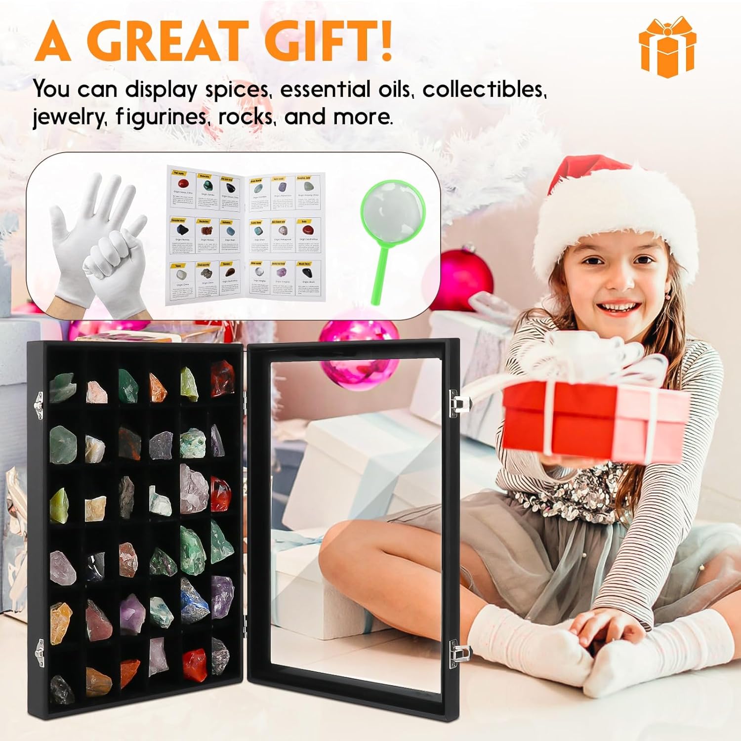 BTYCityMao Rock Collections Box for Kids - Rock Display Case for Collectibles - Rock Collection Storage - Display Shelf for Collectibles - Rock Collection Display Case - 36 Grid PU Leather Rock Box