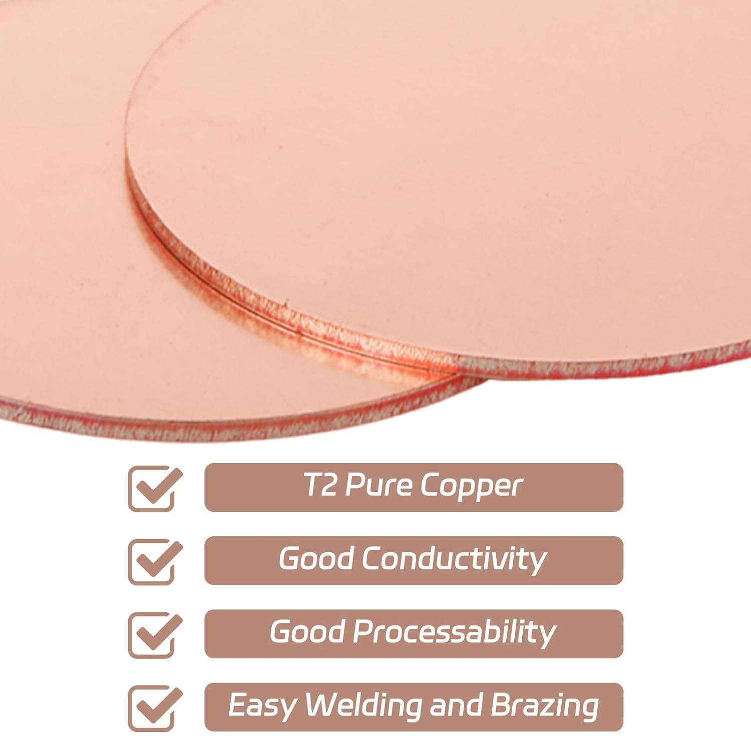 ZOFORTY 2Pcs 99.9%+ Pure Copper Sheet 1-3/16 Inch 20 Gauge 0.03”Copper Round Plate Copper Metal Sheet for Craft Repair Jewelry Electrical IndustrialFeature: Made of T2 pure copper, the copper sheets for crafts have good electrical and thermal conductivity, easy to cut and weld The copper sheet with smooth surface, which is good at welding and brazing Functional Copper Sheet, the copper plate 20 gauge is ideal for a variety of projects, such as arts, crafts, or hobby work to industrial and scientific useSpecification: Item Type: Copper Sheet Material: 99.9% Pure Copper Diameter: 30mm / 1.18 inch Thickness: 0.8 mm / 0.03 inchPackage included 20 x Pure copper sheetNote Please allow slight deviation due to manual measurement The colors may exist a slight difference due to different screens