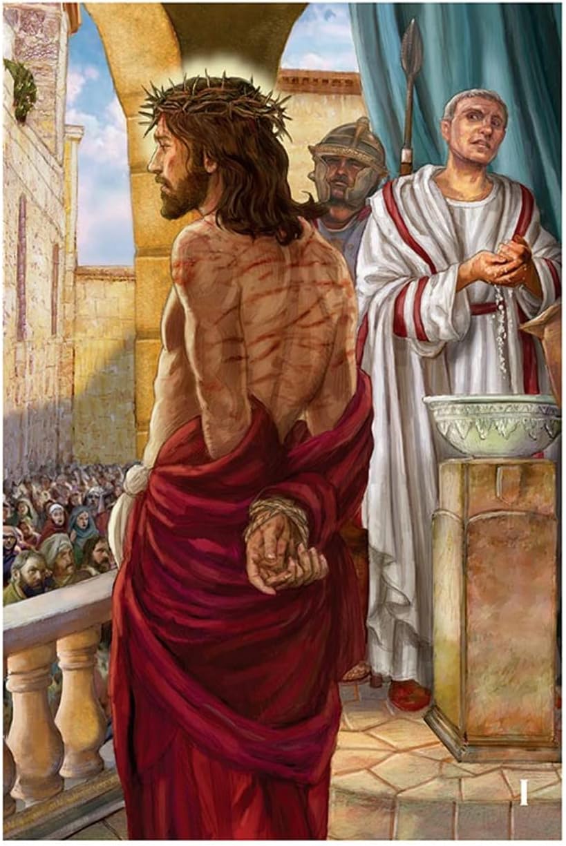 These Aluminum Stations of The Cross Plates are printed in high resolution. Each plate wonderfully depicts one of the 14 Stations of the Cross. All Pieces are numbered with Roman numerals for ease in identification and displaying.Exclusive design by Michael AdamsComes with self-adhesive hook for easy to hang