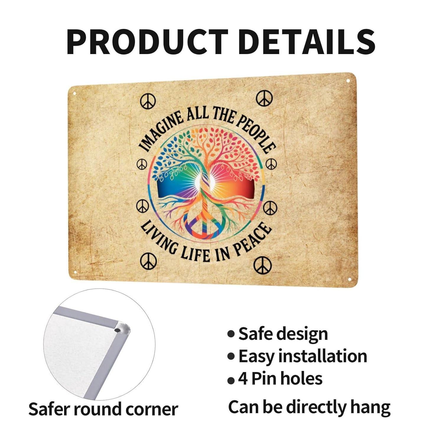 Your Imagine All The People Living Life In Peace Decor With Our Exquisite Tin Plate, Crafted From High-Quality Tinplate And Designed To Bring A Touch Of Elegance And Charm To Any Space.This Beautifully Printed Piece Features A Full Single-Sided Print That Captures The Eye And Enhances The Ambiance Of Your Home Or Business.Perfect For Adding A Romantic Flair Or Festive Spirit, Our Tin Plate Is Versatile Enough To Suit Various Environments, Including Living Rooms, Bars, Cafes, Milk Tea Shops, Industrial-Style Restaurants, Garages, And More.