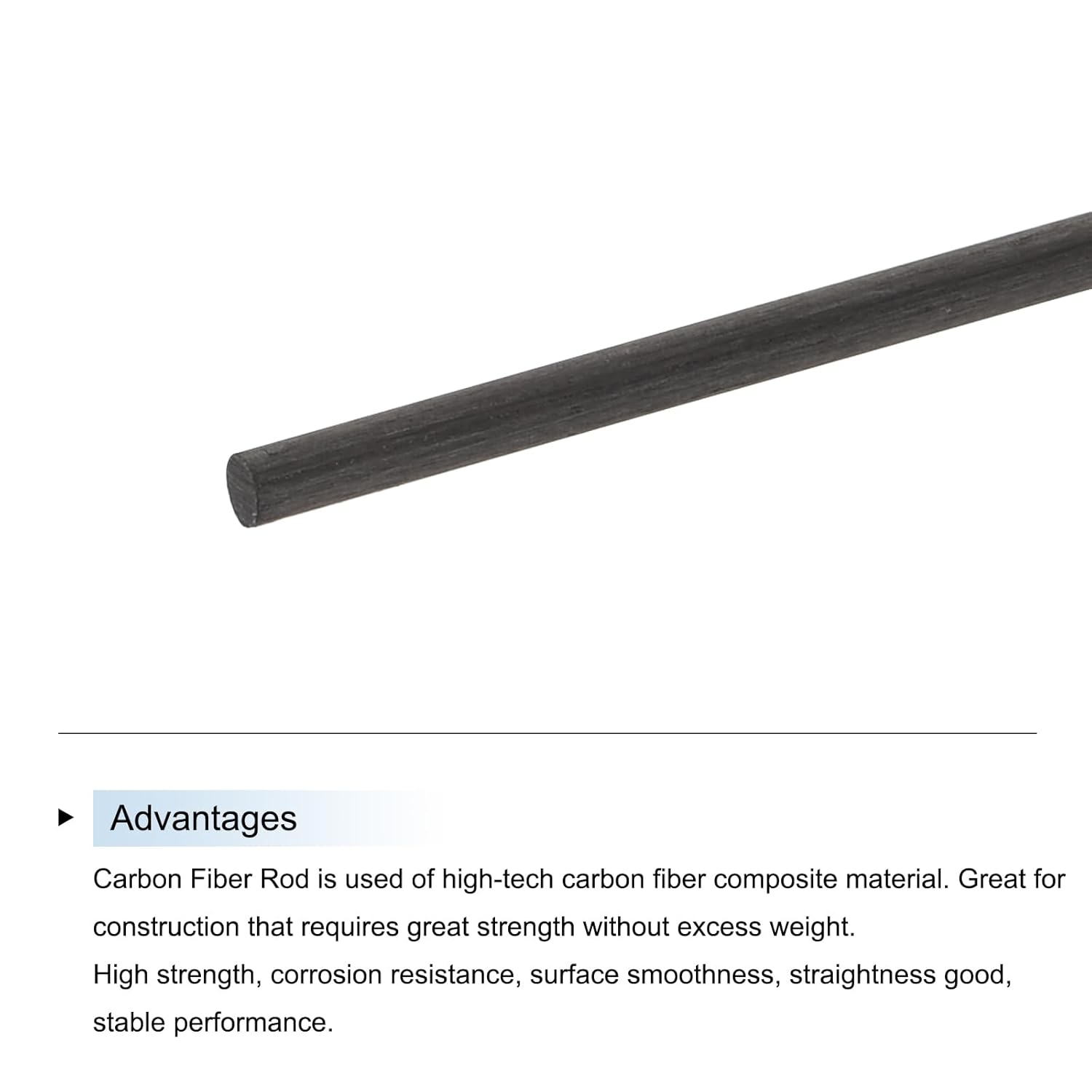 What is this? Carbon fiber rods are used for quadcopter helicopters, RC aircraft, model rails, indoor kite making, graphite fishing rod repair, wing or tail reinforcement, and reinforcement for RC aircraft, etc. What will I receive? Material: Carbon Fiber Diameter: 2.5 mm/0.1 inch. Length: 500 mm/19.69 inches. Package includes: 5 x round carbon fibre rods. What are the advantages of the product? The carbon fiber rod is made of high-tech composite material. Ideal for buildings requiring high strength without excessive weight. High strength, corrosion resistance, smooth surface, excellent straightness, stable performance. Its specific strength and modulus of elasticity are actually superior to carbon steel, while being lighter than aluminum. It has good electrical conductivity and very good tensile strength. The decorative carbon fiber tube also has a 3D effect. How to use it? Carbon fiber rods are particularly good in bending or compression applications. Can be cut to any length. What should I pay attention to? All sizes are measured manually, please allow for a +/- 0.1 inch error.
