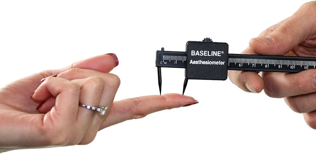 Evaluate cutaneous sensitivity and touch threshold. Plastic points minimize influence of temperature. Measures up to 14 centimeter discrimination.