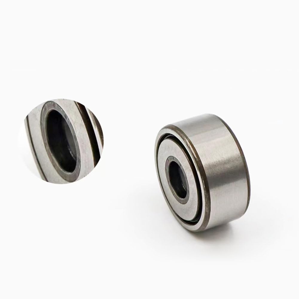 Yoke type roller bearing with retaining ring and embedded seal, cloud supplementary lubrication Support roller bearings (yoke type roller bearings) are used to operate on various types of tracks, as well as cam driven conveyor systems. Its bearings are designed based on needle roller bearings with inner rings. Its thick walled outer ring has a spherical running surface and is equipped with a seal at the factory for easy insYoke and screw type roller bearing rollers: Adopting a single or double row design, needle or cylindrical roller bearings can be installed at any time, installed on shafts or studs (yoke type rollers), or accompanied by heavy-duty roller studs, with fixed threads and installation aids (screw type rollers), with a particularly thick outer wall ring and a crown outer surface. Can support high radial loads, withstand axial loads caused by small deviation defects, skewed operation, or temporary contact operation impacts, provide with or without inner rings (yoke type rollers), produced with or without outer ring axial guidance (screw type rollers always use axial guidance production), both sides are open or sealed, not installed in shell holes, but supported on flat matching tracks, can be adjusted according to the matching track with eccentric sleeve in the design, for example, allowing for greater manufacturing tolerance in adjacent structures.tallation. The sliding hole on the inner ring helps to supplement lubrication.
