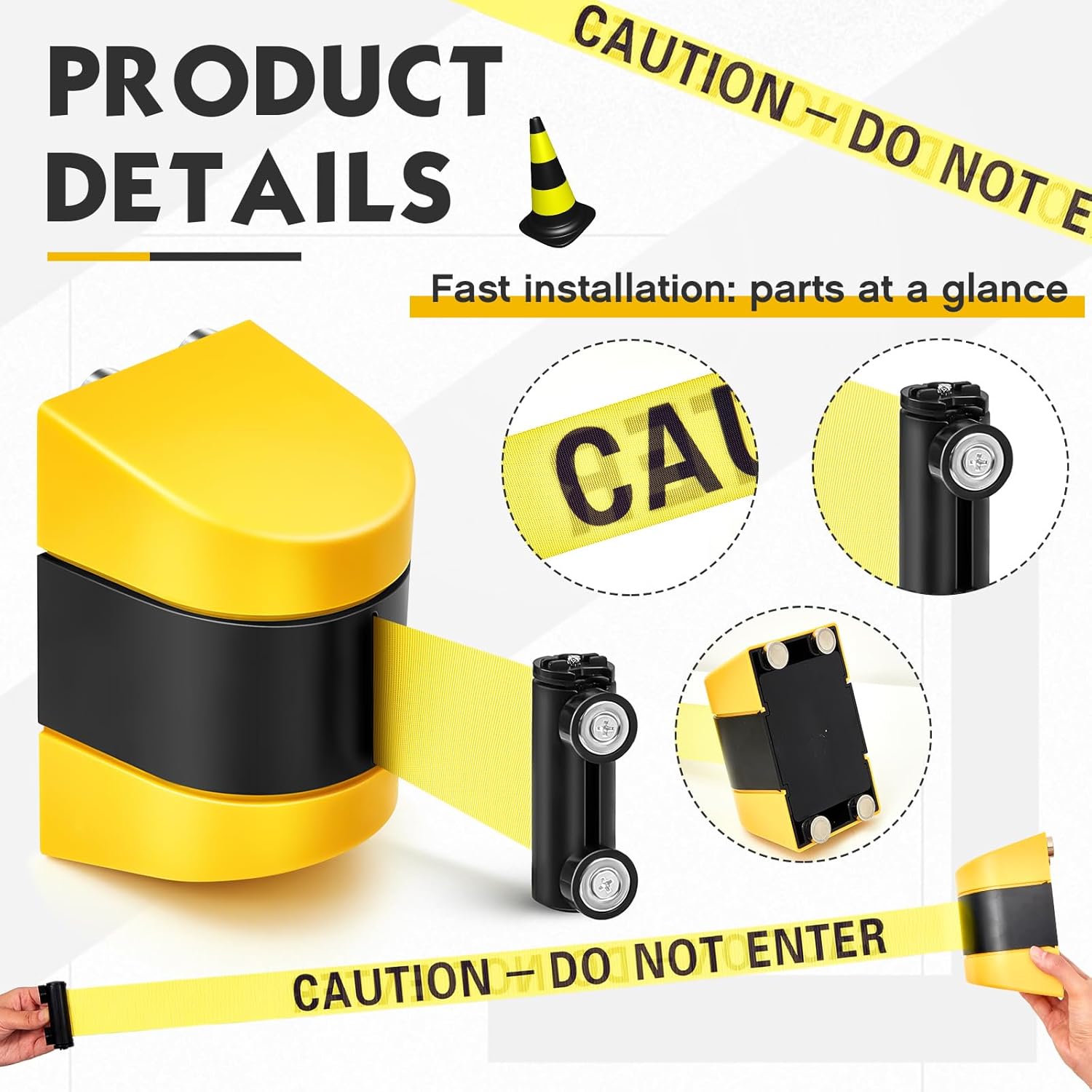 • Highly Visible: the 16.4 ft long striking yellow retractable tape coupled with the strong black cautionary message [CAUTION DO NOT ENTER] ensures this warning belt is highly noticeable in various surroundings, enhancing its prevention capability