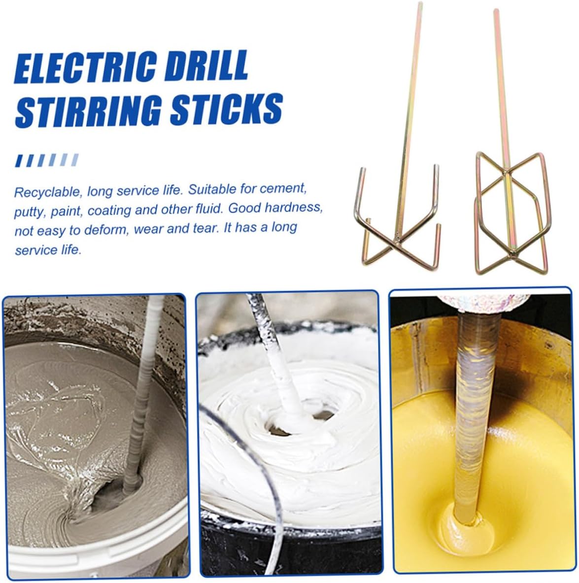 Package Include 4 x Mixing Rods Features -Color: As shown mixer paddles -Material: Steel grout mixer for drill -Size: About 49.00X12.00X12.00cm/19.26X4.72X4.72inch mud mixer - Used for mixing paints, stains, epoxy resins, gypsum, etc. Can also be used for of cement mixer. - The design mixes the product from the bottom up to prevent air bubbles from being sucked into the material paint stirrer for drill - The construction and steel material is suitable wide range of applications mixing paddle for drill. - A good assistant to help you mix some construction fluid and operate without other's help paint mixer drill attachment. - Smooth steel paddle edges won't scrape plastic from the mixing bucket paint mixer for drill.Goods Informationmixer paddle More durable, heavy duty and easier to clean.drill paint mixer attachment Allows user to mix the paint or whatever needs mixing right in the can or bucket.mixing paddle Constructed from high strength and high-class to ensure a lifetime of use.mixing drill Perfect for chemical mud, food coating, paint and cement mixing