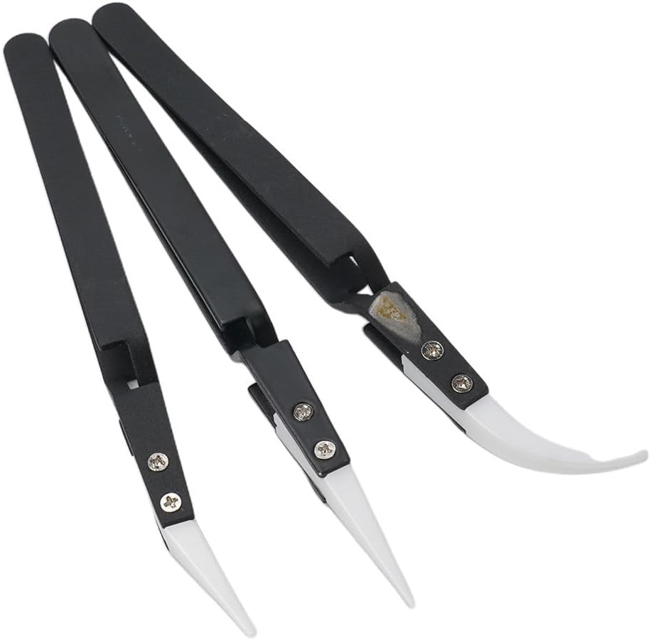 Product description Description:*Zirconia ceramic for precision tips.*for resistivity 10E12Ohm.* , high temperature, wear and resistant.*Ceramic replaceable tips.*Convenient to use.* in use.Specification:*Material: Stainless Steel + Ceramic*Type:Little Curved Tweezer,Big Curved Tweezer,Straight Tweezer*Color: Black and White*Length: approx. 135-140mm*Quantity:3pcsPackage included:3 x Ceramic Reverse TweezerNote:1. The real color of the item may be slightly different from the pictures shown on website caused by many factors such as brightness of your monitor and light brightness.2. Please allow slight manual measurement deviation for the data. Manufacturer Contact Information no