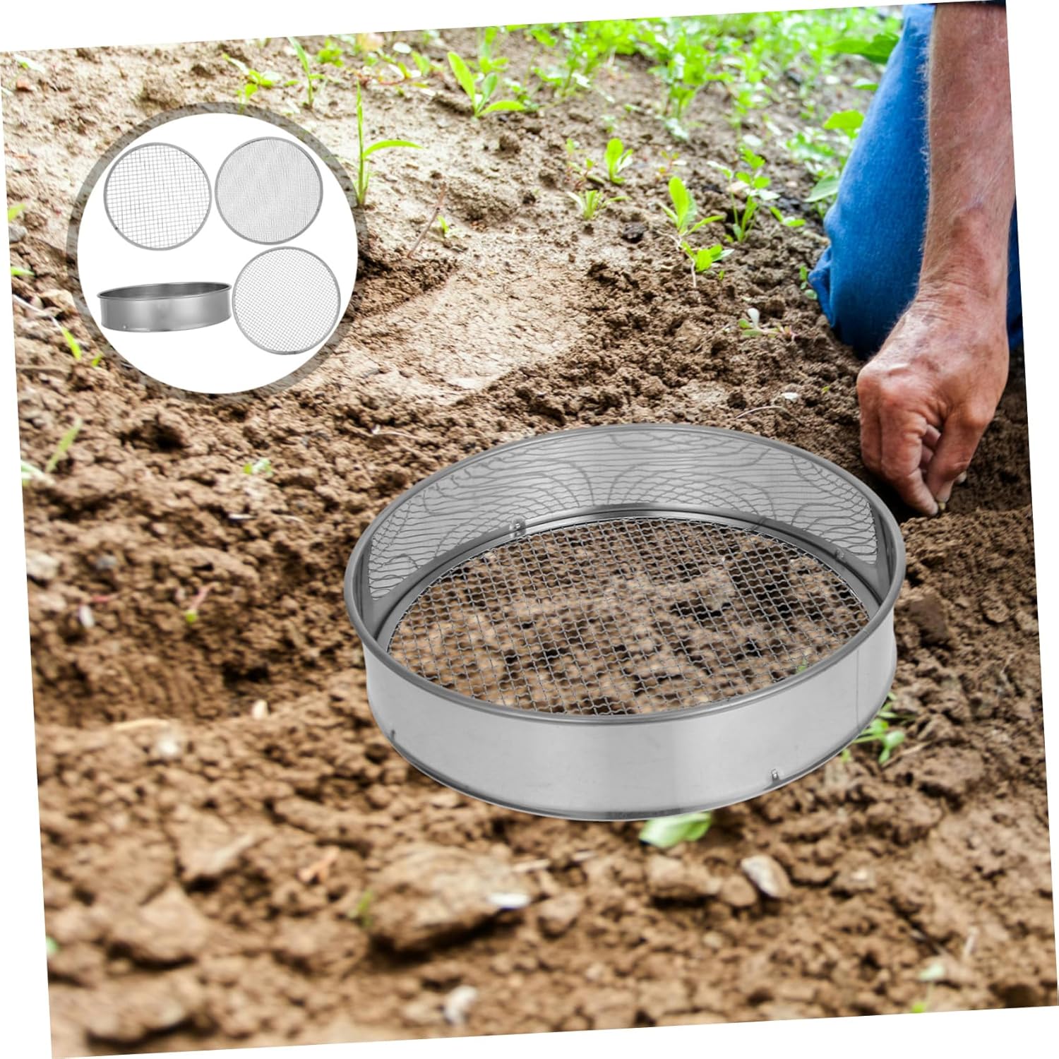 Package Include 1 x frame 3 x Sifter Features -Mesh hole diameter:3mm/6mm/9mm multi-use sifter -Round Sieve: Round shape design, with proper diameter, a for home gardening and planting soil sifting pan - Choice: The mesh sieve is easy to clean and can be rinsed off with water, making it a choice for gardeners who need to sift frequently garden soil sifter -Gardening Tool: The mesh sieve is gardening tools to help you filter sand and stones gardening sieve -Material:Stainless steel soil sifter -Widely Applied: Small hole sieve can be widely applied for size classification of various products, offer you using feeling sifter for rocks -Size:25.00X25.00X5.50cm/9.82X9.82X2.16in rocks sifters - : The mesh sieve provides an sift rocks, debris, and other unwanted materials from soil and compost multi-use soil sieve -Color:Silver soil mesh sievesGoods Informationsoil mesh sieves This item is a set of gardening tools.soil sifting pan Are you looking soil sieve for your planting? The item will be a choice.rocks sifters It is made of stainless steel material, and .multi-use sifter And it's light, easy-to-handle, convenient to operate.sifter for rocks Nice for balcony garden, mini garden