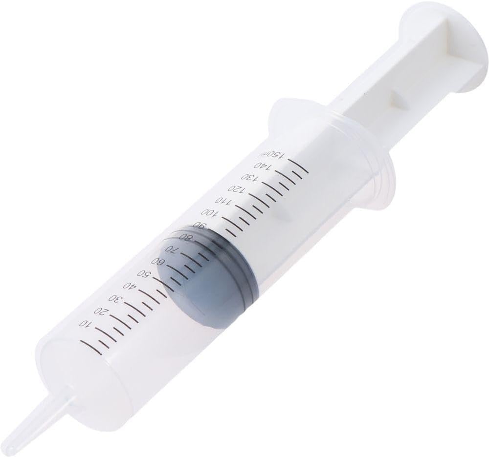 Product Name: Plastic SyringeMaterial: Polypropylene plasticColor: TransparentCapacity: 150mlSize: 17*4cmPackage including: 3pcs Plastic SyringesTips:1. Due to the light and monitors effect, colors may have lightly difference.2. Please allow slightly size errors due to manual measurement. Thank for your understanding!