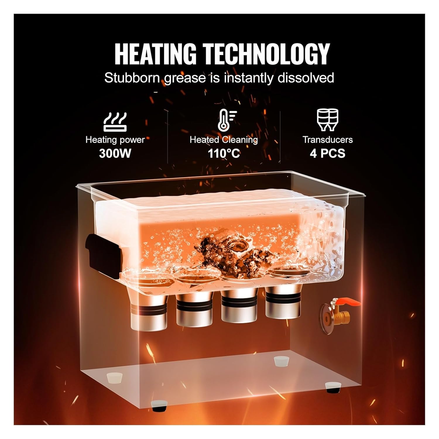 Ultrasonic Cleaner: Power and Precision for Effortless Cleaning!The ultrasonic cleaner employs professional cleaning methods that meticulously care for various items, protecting their integrity and quality, ensuring your possessions remain radiant and sparkling.Utilizing advanced transducer technology, the 40 kH ultrasonic waves generate millions of tiny cleaning bubbles that penetrate surfaces and crevices, thoroughly removing dirt without damaging the item's appearance or quality.Crafted with high-quality 304 stainless steel tanks, this ultrasonic cleaner machine ensures lasting durability while providing consistent cleaning results, offering you a long-term user experience.The convenient knob operation allows you to easily set cleaning time and temperature according to the needs of different items, meeting personalized cleaning requirements and maximizing cleaning effectiveness.This cleaner machine is suitable not only for commercial use but also widely applicable in laboratories, carburetors, circuit boards, equipment, jewelry, eyeglasses, watches, tableware, and more.Features & DetailsPowerful Cleaning Performance The Ultrasonic Cleaner operates at an ultrahigh frequency of 40kH generating millions of tiny bubbles that explode in water releasing strong cleaning energy This energy penetrates every crevice, thoroughly removing stubborn stains from delicate parts, ensuring no area is left uncleaned.Advanced Transducer Technology: The efficient transducer, combined with ultrasonic shock waves, instantly breaks down tough grease. With 360° cleaning of precision instruments, it easily eliminates stubborn dirt, and oil without damaging the items. Whether for everyday items or professional cleaning needs, you can use it with confidence.Heated Cleaning: For different items such as jewelry, watches/electronic accessories, and heavy grease industrial components, you can control the cleaning temperature from 0-110°C to accelerate the dissolution of dirt. This provides more efficient and targeted cleaning results. The high-temperature mode quickly breaks down stubborn grease, while the low-temperature mode gently protects sensitive materials.Outstanding Quality: Made with corrosion-resistant and wear-resistant 304 stainless steel baskets and inner chambers, the included basket prevents scratches during cleaning. The portable handle and convenient drainage design make operation easy and straightforward, with every detail designed to provide an exceptional cleaning experience.Wide Applicability: From precious jewelry to complex automotive parts and everyday eyewear, this ultrasonic cleaner handles all with ease. Whether you are a professional mechanic, a laboratory researcher, or an everyday user, this ultrasonic parts cleaner is your reliable assistant.==========<;800WCapacity : >900mlVoltage : 220Ultrasonic Power : 240WHeating Power : 300WFrequency 40kHz : 40kHCapacity : 10LNoise Level : 75dBControl Time : 0-30 MinutesTemperature Range : 0-110°CStainless Steel Inner Tank Dimensions : 296 x 237 x 147 mm (Wall ThicknessUltrasonic Transducers : 4 PCSPower Cord Length : 1.5 mProduct Weight : 6 kgProduct Dimensions : 328 x 268 x 292 mm