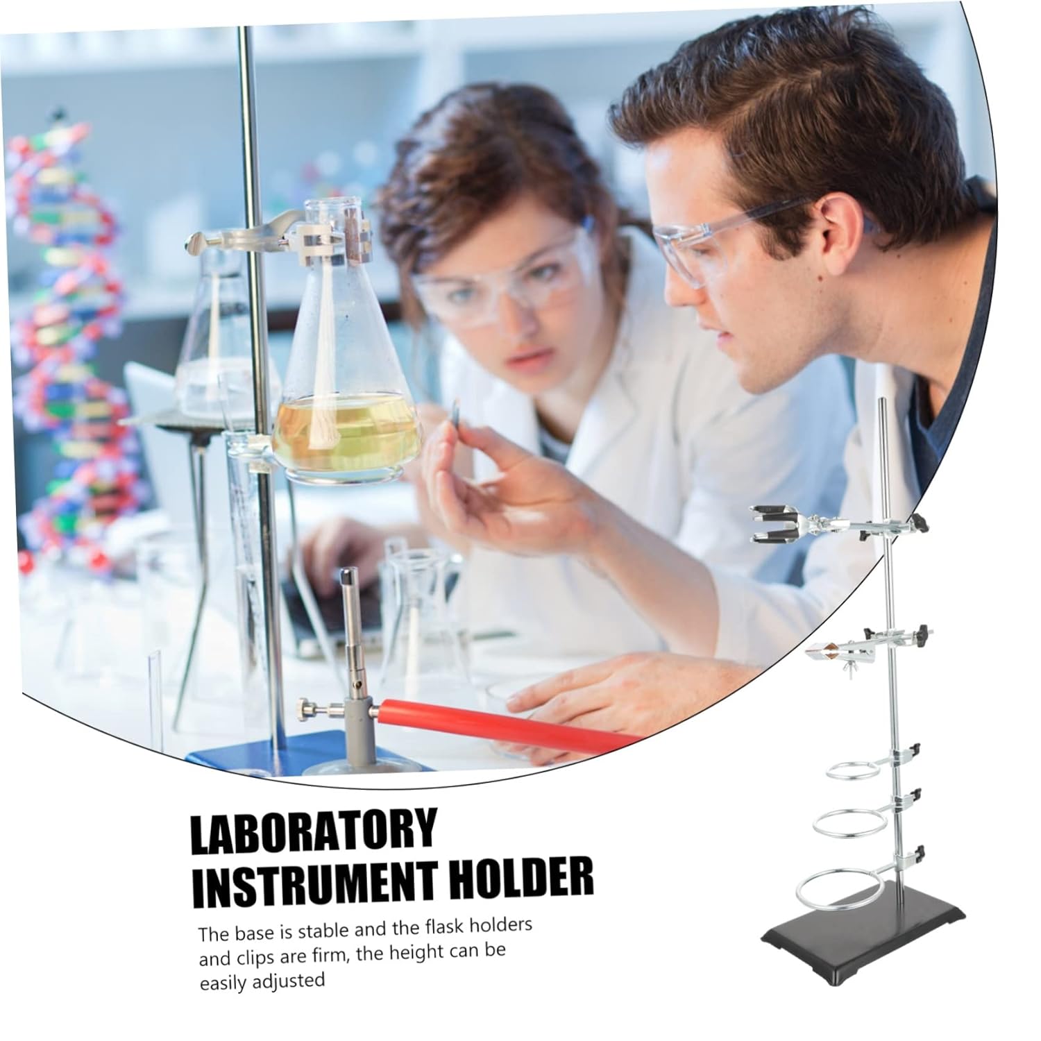• Ring stand: the base is stable and the flask holders and clips are firm, the height can be easily adjusted,chem kit