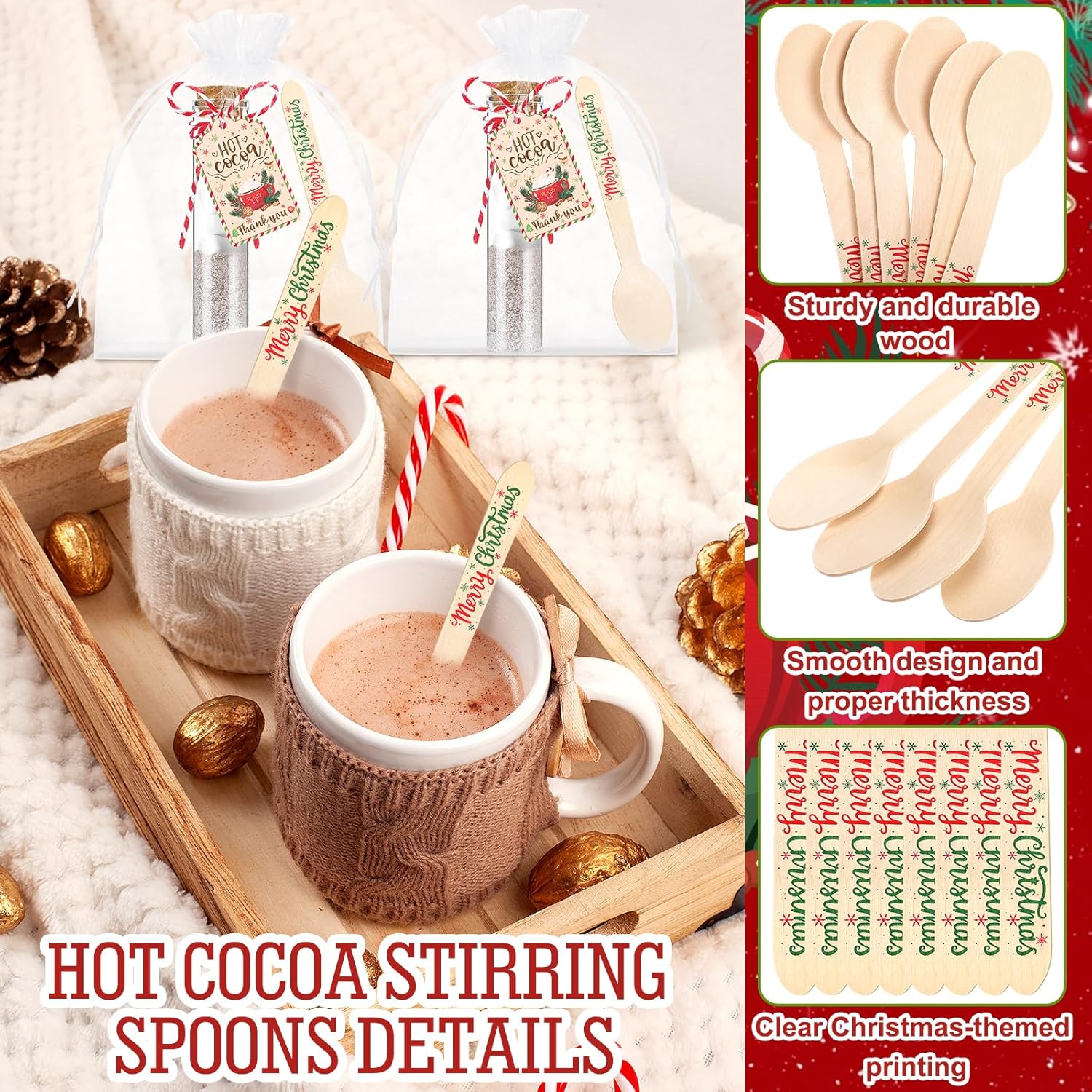 Specification:Material:Glass+Cardstock+WoodColor: As showPackage Size: 23.5x20x7.8cmPackage: 24 Hot Chocolate Gift SetNotes:Due to the light and screen setting difference, the item's color may be slightly different from the pictures.Please allow slight dimension difference due to different manual measurement.