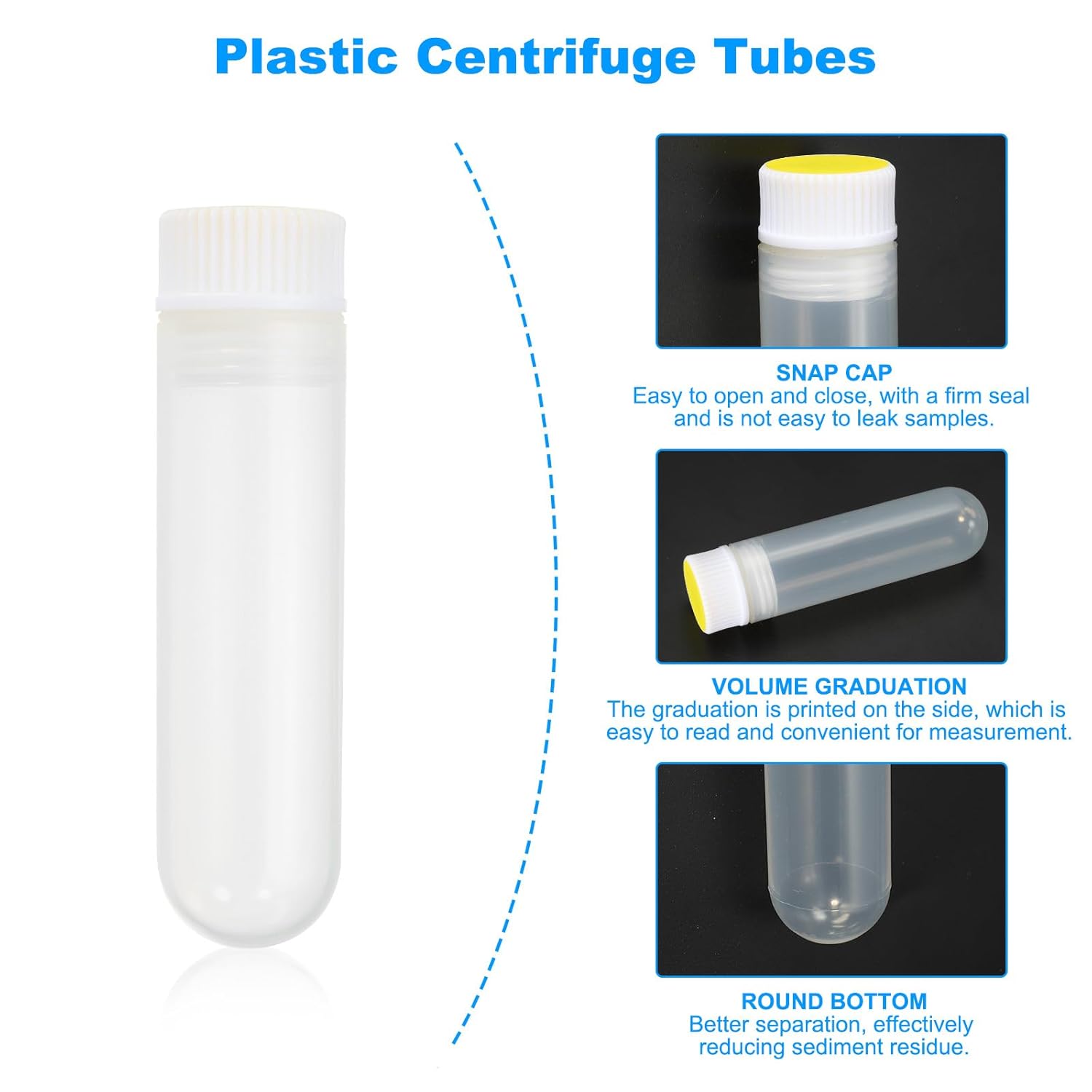 The plastic centrifuge tubes are widely used in biotechnology and life science, environmental research, Removal of microorganisms from aqueous solutions or separation of protein in sample matrices, etc. They can also be used to separate and prepare samples, including the preservation of solids, liquids, powders and granular objects.SpecificationMaterial: PlasticColor: Yellow, WhiteCapacity: 30mlOverall Size (Approx.): 105 x 27.5mm / 4.1" x 1.1" (Dia.*L)Package Content: 12 x Plastic Centrifuge TubesAdvantageThe test tube is made of plastic material, no bubbles, which is odorless and durable, clear and easy to observe, not easy to break and will not slip during use. The centrifuge tube is equipped with a leak-proof screw caps that seal securely and is not prone to leaking samples.InstructionEasy to use. Prepare the sample, slowly pour the liquid sample to be tested into the centrifuge tube, and seal the centrifuge tube with the matching centrifuge cap.NOTEPlease choose centrifuge tubes of appropriate sizes according to experimental needs and mark them to avoid confusion.
