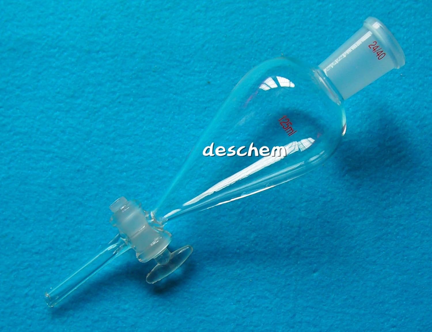 Deschem 125ml,24/40,Lab Glass Pyriform Separatory Funnel,Straight Tube,Pear Shape(1)Separatory Funnel:Pear Shape(2)Material:Borosilicate 3.3(3)Volume: 125ml(4)Glass Stopcock(5)Glass Ground Joint 24/40