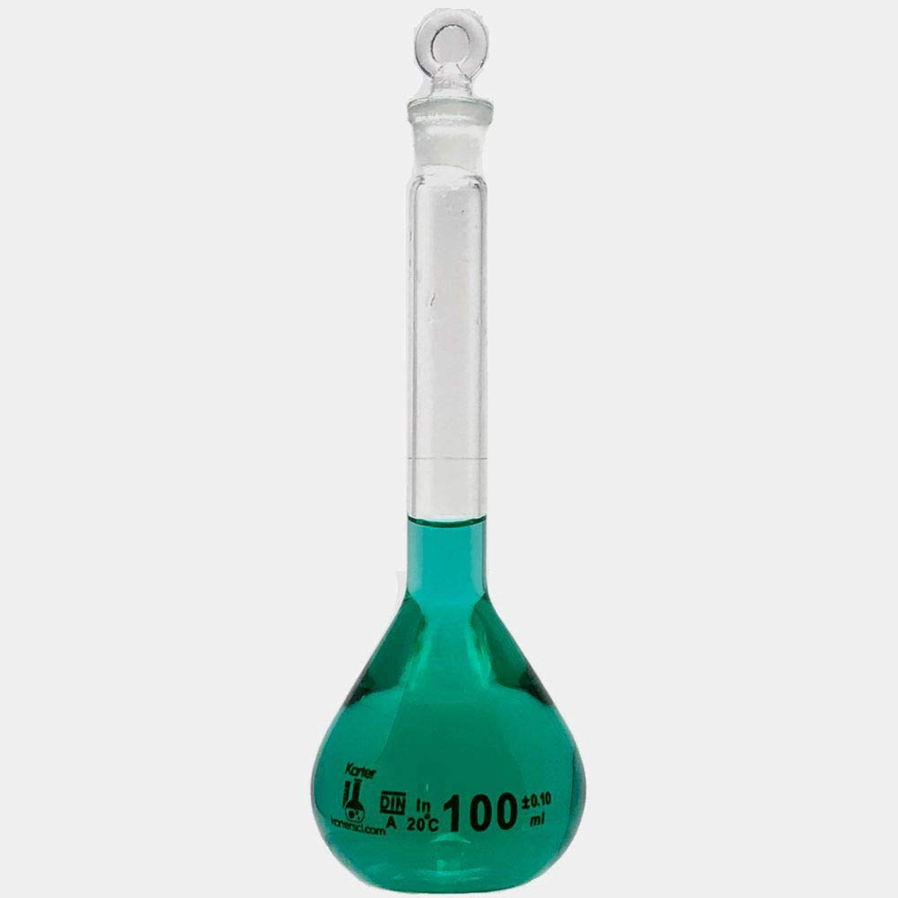 100ml Volumetric Flask, 3.3 Boro Glass, Class A, Ground Stopper, Karter Scientific 213W5 (Pack of 2)