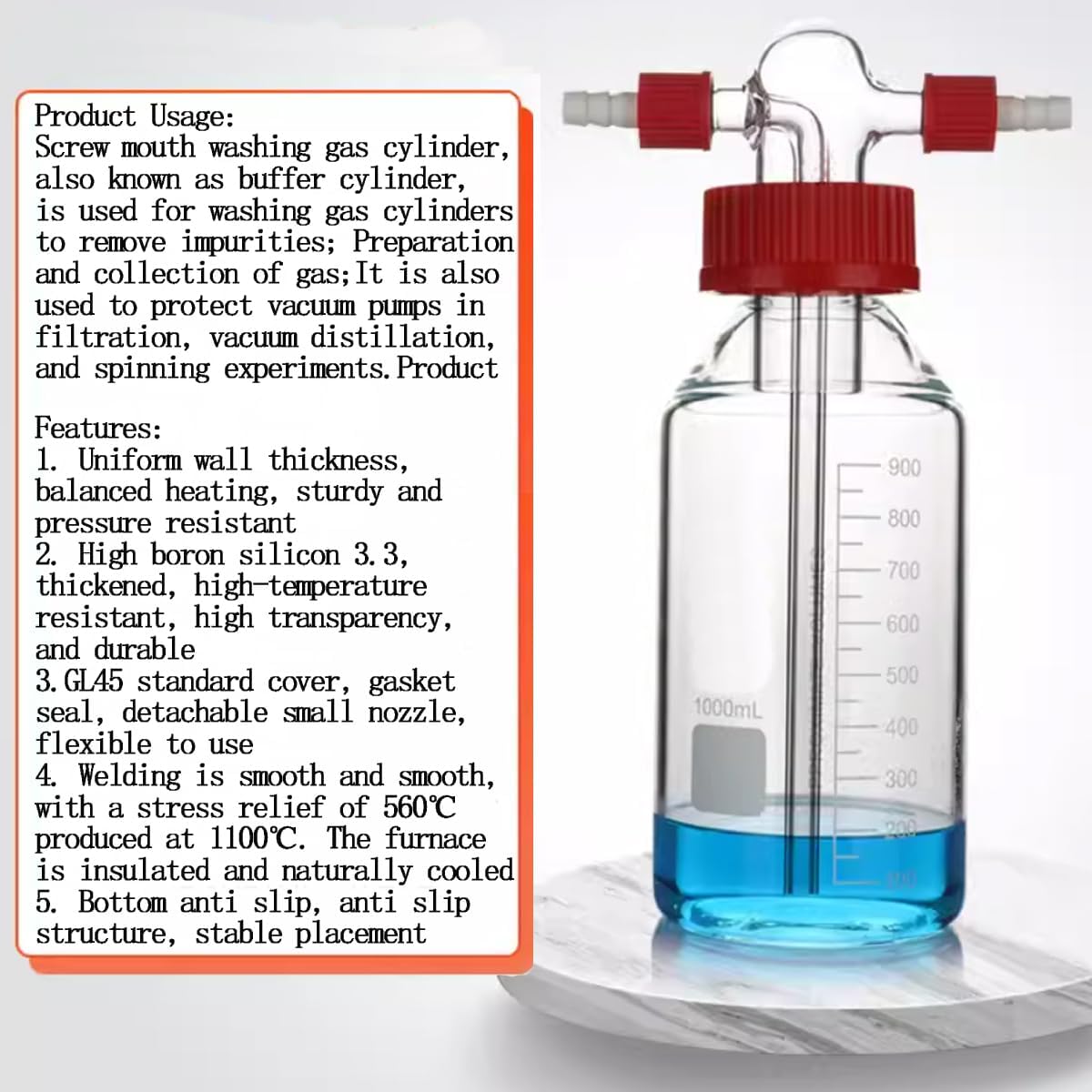 | Included Components | Gas Washing Bottle |