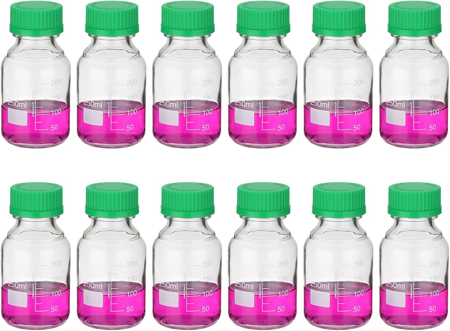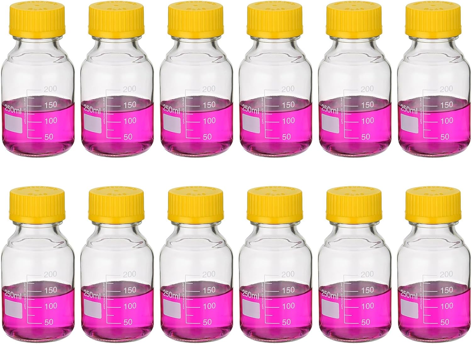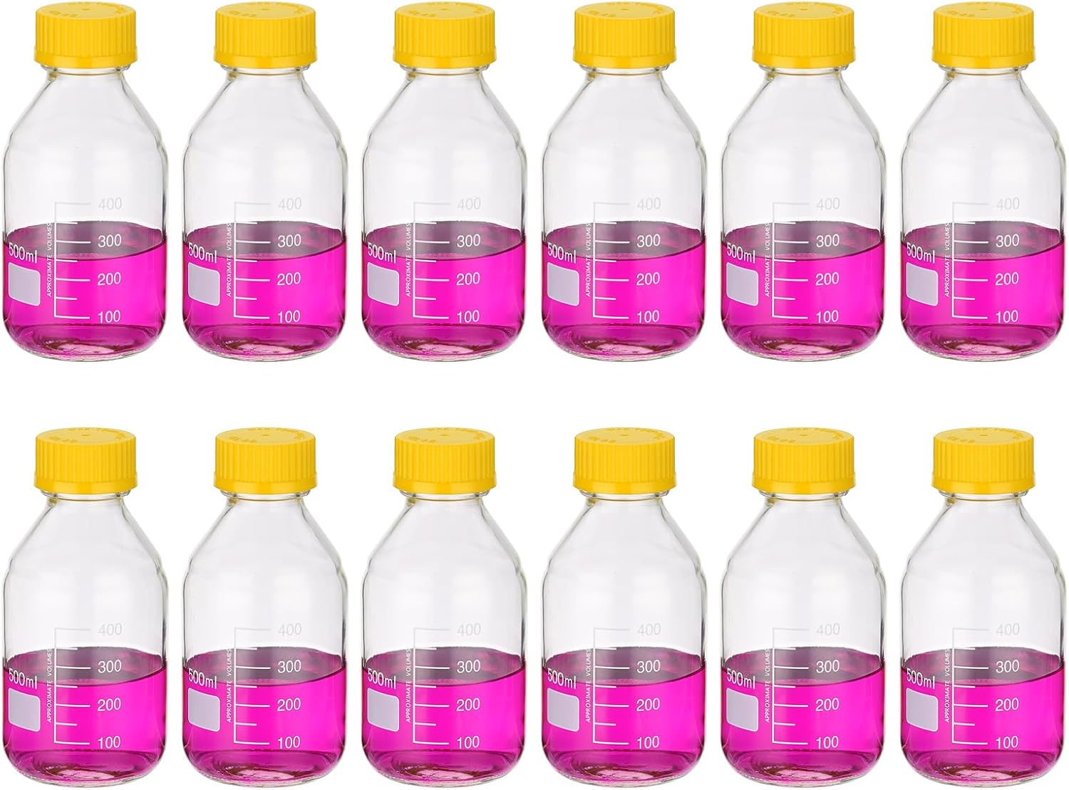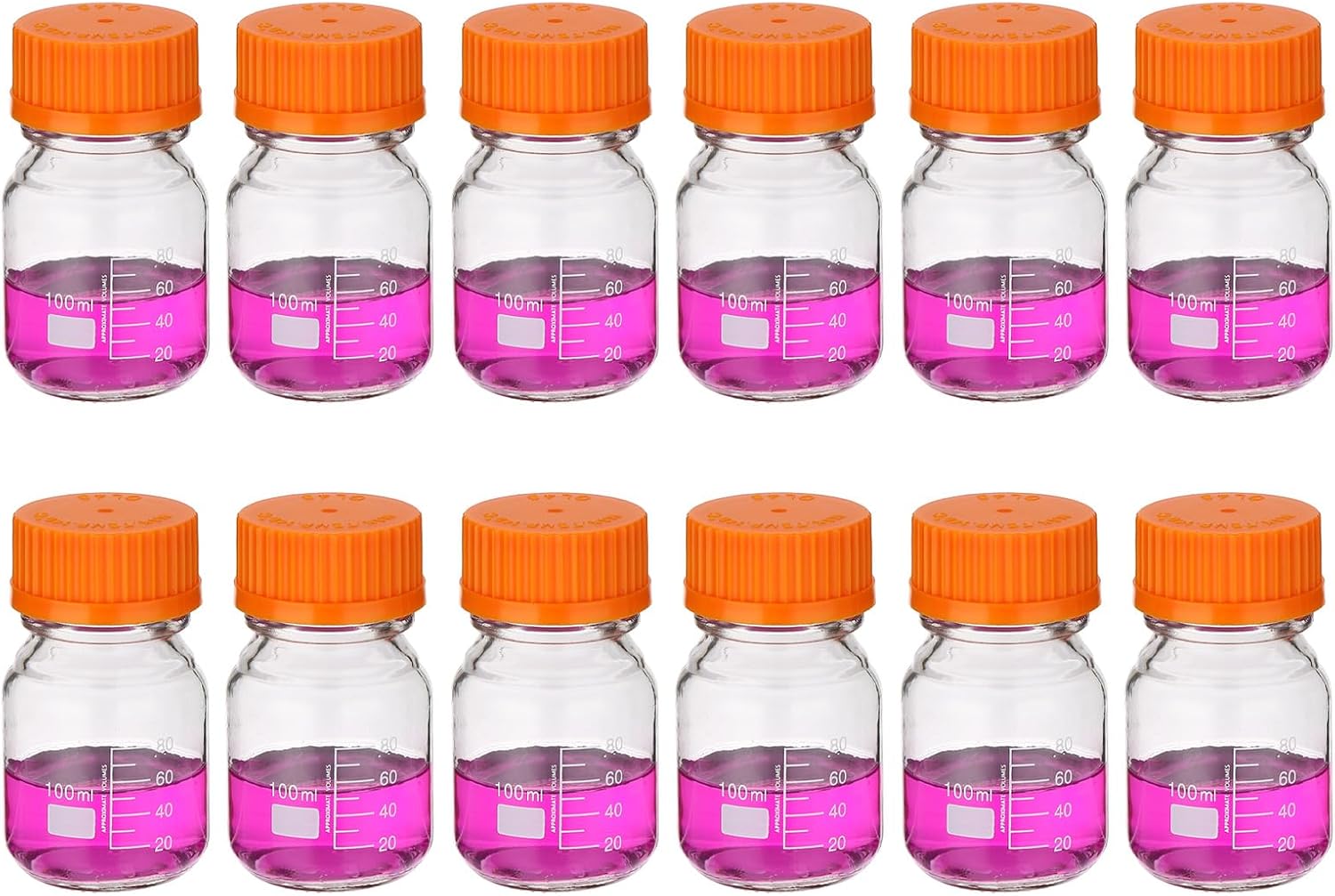 Leakproof: Our Media Storage Bottles are designed with a smooth bottle mouth that perfectly fits the GL32 screw cap, ensuring a tight and secure seal. This leakproof feature prevents any liquid from spilling or leaking out of the bottle, minimizing the risk of evaporation and exposure to external elements.Easy to Read: Package includes 12 pack Media Storage Bottles with a capacity of 100ml, featuring a graduated white printed scale, providing precise measurement and accurate volume readings. The smooth surface of the bottle allows for easy cleaning and ensures clear visibility during experiments or storage.Durable Material: Made from borosilicate glass, which is excellent durability and heat-resistance. They are chemically resistant and maintain their transparency even after repeated use. The thickened bottom adds to their durability and ensures long-lasting performance.Large Marking Area: These bottles are suitable for storing media, reagents, and other liquid solutions in laboratory, experimental, or home settings. The large marking area allows for easy identification and labeling of contents, facilitating efficient organization and retrieval.Screw Cap: The screw caps of our Media Storage Bottles are made from durable polypropylene (PP). They exhibit excellent resistance to high temperatures and corrosion, with a maximum temperature tolerance of 140 degrees Celsius. The secure screw cap design ensures airtight sealing and protection of stored liquids.