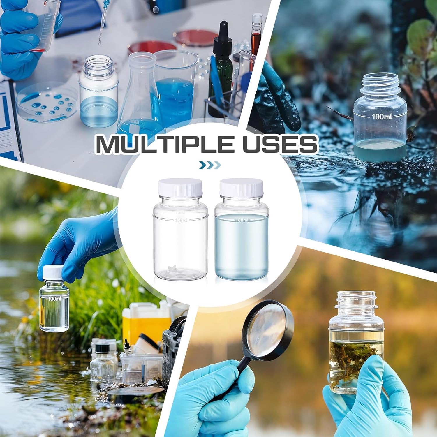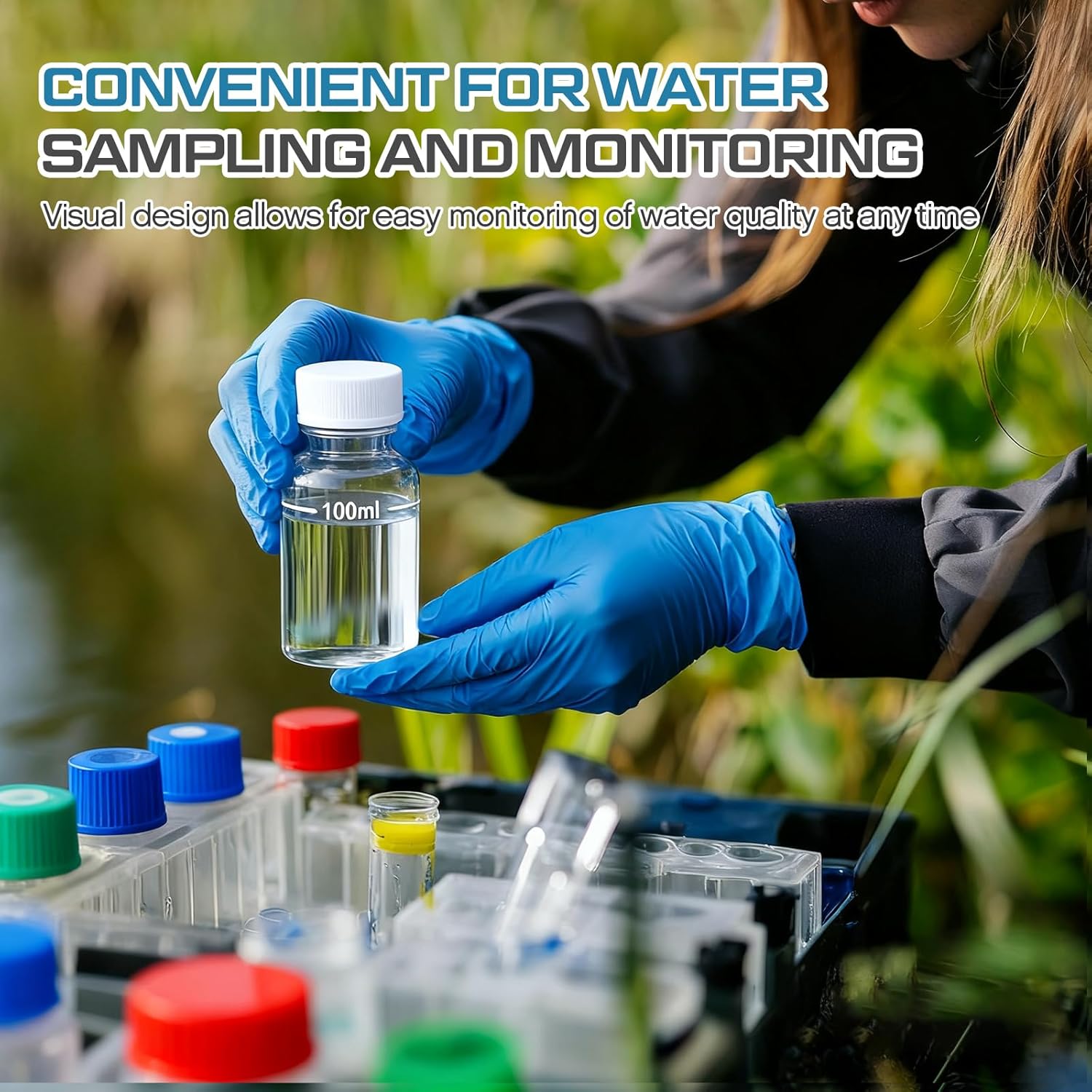 Features: User-Friendly Design for Efficient Fieldwork Featuring a wide-mouth opening and smooth threading, these bottles enable quick, spill-free filling even in challenging environments. The lightweight yet rigid structure facilitates single-handed operation, making them practical for field technicians conducting large-scale water sampling campaigns. Quality Control for Regulatory Compliance Each production lot undergoes sterility verification and performance testing, This ensures adherence to environmental monitoring protocols, providing laboratories and water agencies with precise data for purposes. Specifications: Material: plastic Color: transparent Size: 100 ml Package includes: 50 Pcs 100ml Sterile Water Sampling Bottles Notes: Manual measurement, please allow slight errors on size. The color may exist a slight difference due to different screen displays