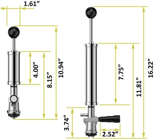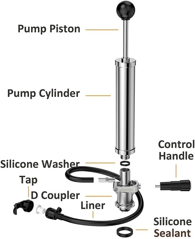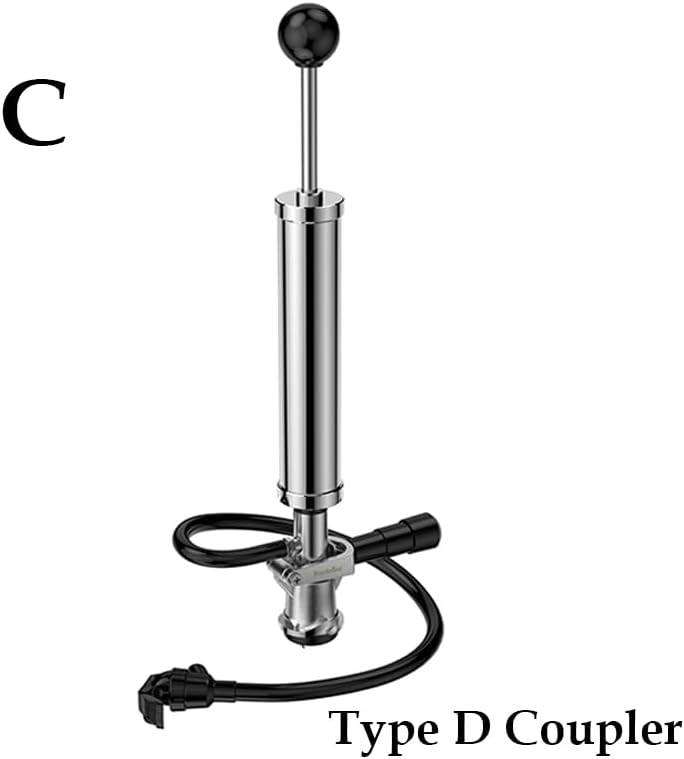 This Keg Party pump (available in 4" and 8" cylinder sizes) is a manual draft beer dispensing tool designed for casual gatherings and outdoor events. Crafted with rust-proof chrome brass and a 304 stainless steel handle, it is designed to withstand regular use at picnics, barbecues and parties, offering durability for serving fresh draft beer in standard American Sanke kegs. With a 24-inch hose with a picnic tap and D-system coupler, the pump easily connects to common American Sanke barrels; no electricity or gas tanks are needed for operation, making it perfect for outdoor activities where power sources may be limited. Simply connect the coupler to the beer keg push down the lever and start pumping; once the pressure in the barrel increases, you can effortlessly serve fresh beer to guests. A food-grade silicone washer between the pump body and barrel coupler helps secure connection and reduce leakage, while an annular gasket inside the shaft ensures one-way air travel to maintain consistent pressure. The spring mechanism inside the pump also prevents improper operation, adding reliability to the dosing process. Lightweight and portable, this picnic pump is easy to carry to weddings, festivals, sports parties and other gatherings, allowing you to serve draft beer anywhere in comfort. ========== Product Type : Barrels Material: metal. Origin: Mainland China