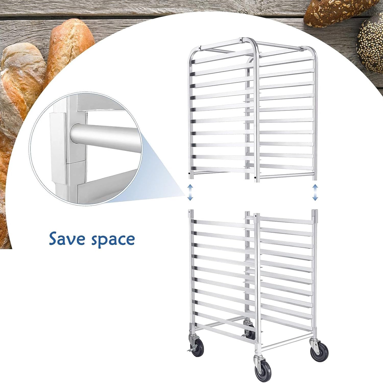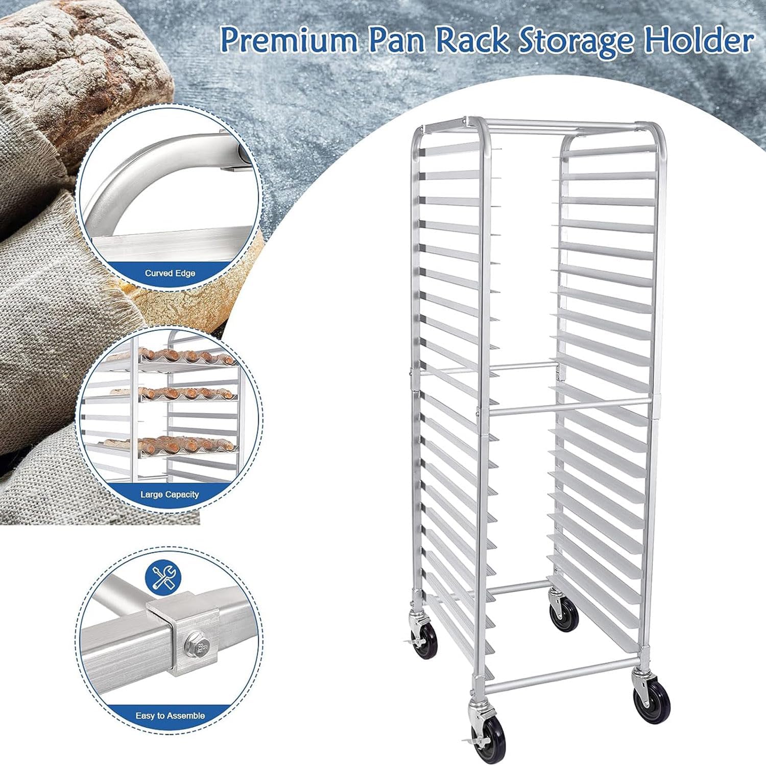 The Restaurant Equipment Sheet Pan Rack is an indispensable addition to any commercial kitchen, bakery, restaurant, cafeteria, or bar. Designed with a versatile 10/20 tier layout, this baker rack allows for efficient organization of your baking sheets and s, helping to maintain a tidy workspace and streamline your baking process. Constructed from heavy-duty aluminum, our bakery rack is not only sturdy and rust-resistant but also lightweight, making it easy to transport around your kitchen as needed. This combination of durability and convenience ensures that you can rely on this rack for all your baking needs, whether you're preparing for a busy service or simply organizing your kitchen. Key Specifications: - Name: Baking Tray Shelf - Main Material: Aluminum - Size: As shown in the picture - Layers: 10/20 Tier - Product Color: Silver - Layer Height: 7.6 cm - Applicable Baking Tray Size: 60 x 40 cm - Assembly Required: Yes - Features: Detachable and movable Investing in our sheet pan rack not only enhances the functionality of your kitchen but also contributes to a more efficient baking experience. Say goodbye to clutter and hello to organization with this essential kitchen tool. Perfect for both professional and home bakers, this rack is ideal for anyone looking to optimize their baking setup.