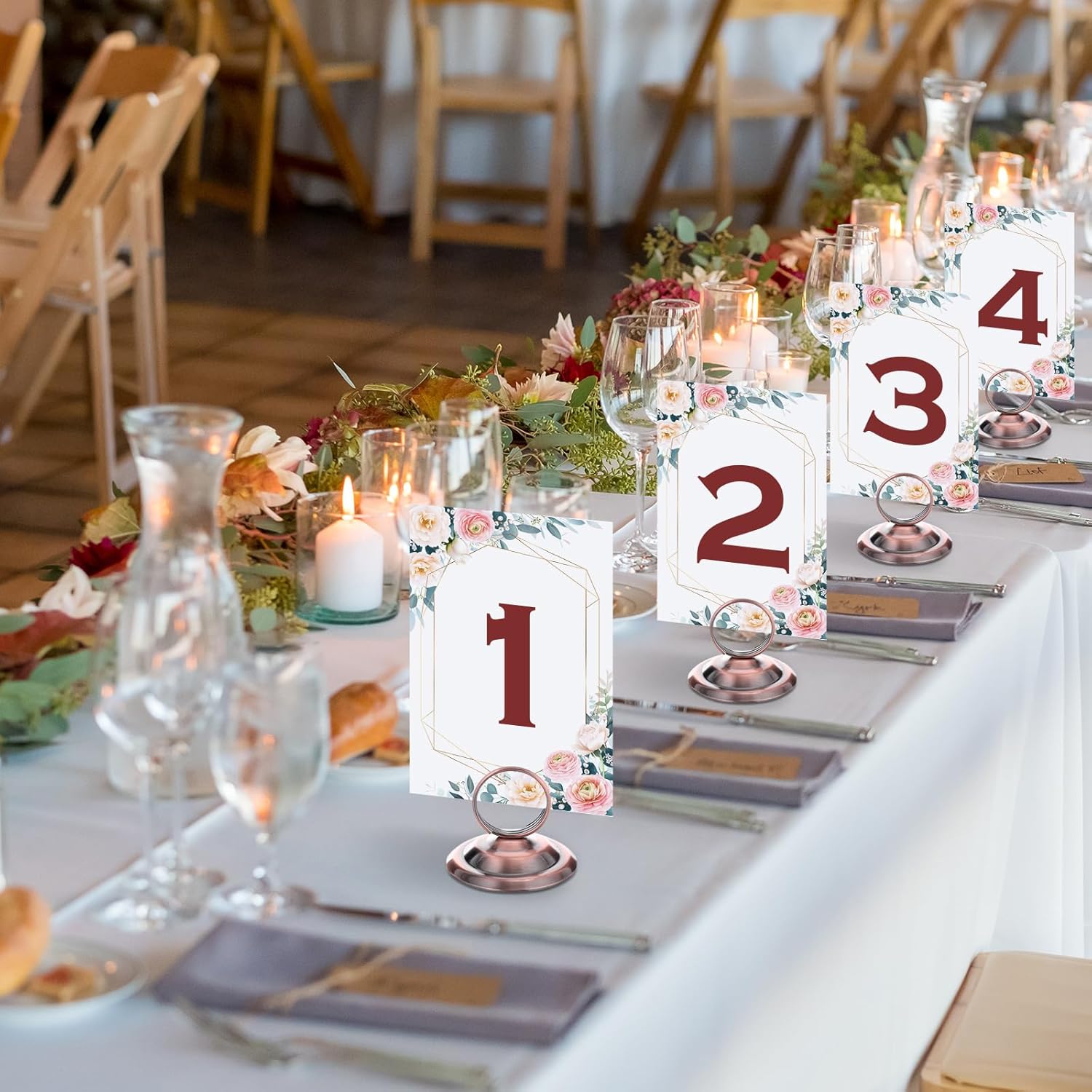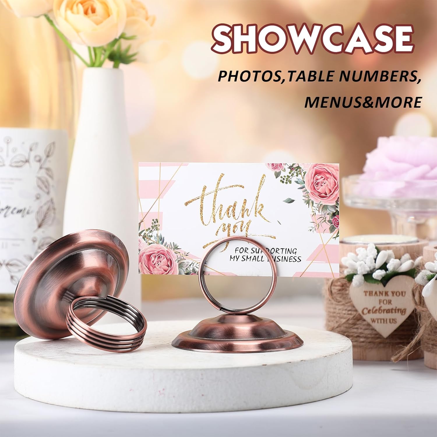 Features: Multi function: These tabletop menu holders can be applied as table number holders, table card holders, photo holders, picture holders, name seat card holders, table menu holders and memos, picture photo holders, table sign holders. Ideal decoration: Our wire picture table card holders use stylish and classic color, which a festive and sweet decoration to the all kinds party. Suitable as wedding decorations, making your wedding elegant and stylish. Specifications: Material: metal Color: antique copper Size: about 2.0 x 2.4 inches Package includes: 24 x Table number holders Notes: Manual measurement, please allow slight errors on size. The color may exist a slight difference due to different screen displays