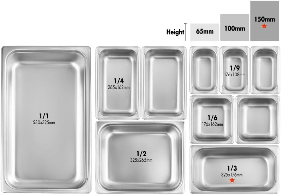 • (Set of 6) 1/3 Size, 6.0-Inch Depth – Ideal for bulk prep, soups, and foods requiring deeper holding