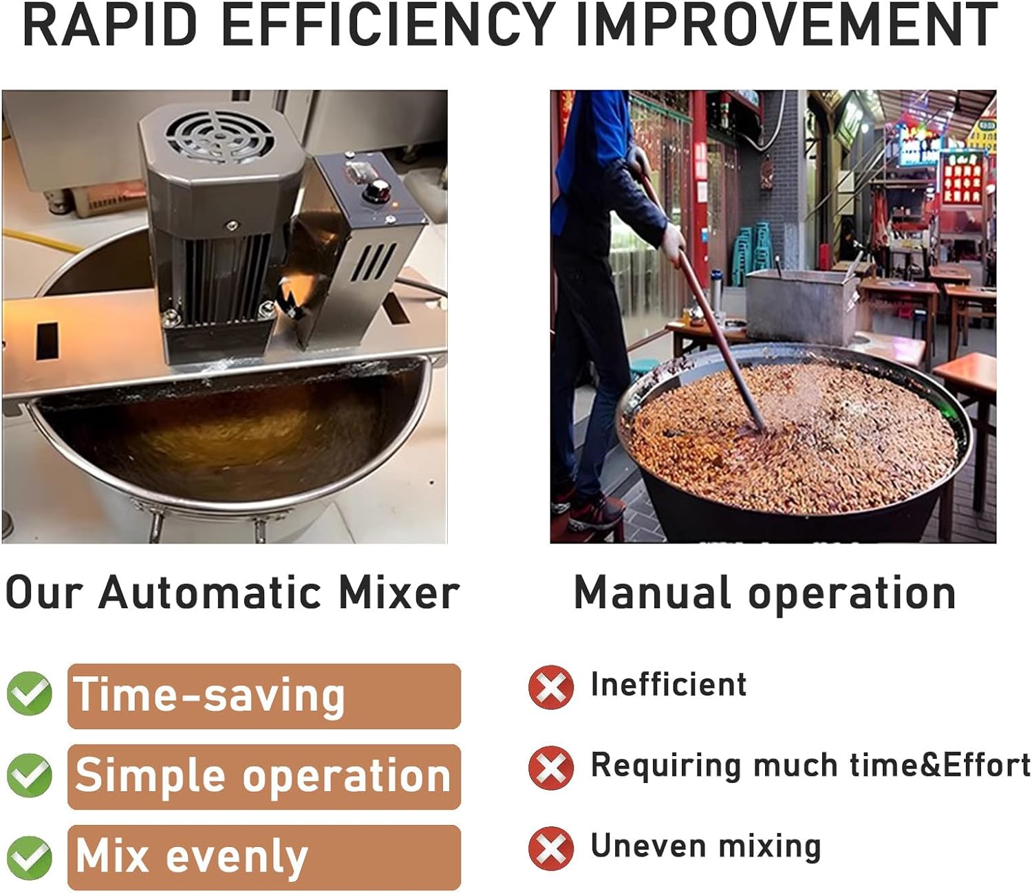 This automatic mixing jar is an essential tool for effortlessly preparing jams, sauces, and other thick fillings, making it perfect for both home kitchens and commercial environments like dessert shops, restaurants, and snack stands. **Key Features:** 1. **High Efficiency**: Powered by a robust copper core motor, this mixer delivers exceptional performance and high torque for quick and consistent results. 2. **Versatile Heating Options**: Designed to work seamlessly with gas stoves, induction cookers, and electric ceramic stoves, offering flexibility in any cooking setup. 3. **User-Friendly Operation**: Equipped with intuitive control buttons, this mixer allows for one-touch operation, making it easy for anyone to use. 4. **Convenient Mixing Functions**: With automatic stirring and tilt-and-pour capabilities, handling ingredients has never been easier, ensuring a smooth mixing process every time. **Specifications:** - **Product Name**: Automatic Food Mixer Machine - **Material**: Durable Stainless Steel - **Compatible Heating Sources**: Gas stove, induction cooker, electric ceramic stove - **Ideal For**: Hotels, food and beverage factories, farms, restaurants, and similar settings. **Package Includes:** - 1x Automatic Stirring Mixer - 1x Stainless Steel Pot **Important Note**: This appliance is designed solely for mixing and does not include a heating function. Please place it directly on your existing heating equipment for optimal use. Upgrade your cooking experience with this automatic mixing jar, designed to save you time and enhance your food preparation with consistent quality. Whether you're a home cook or a professional chef, this versatile appliance will elevate your culinary creations.
