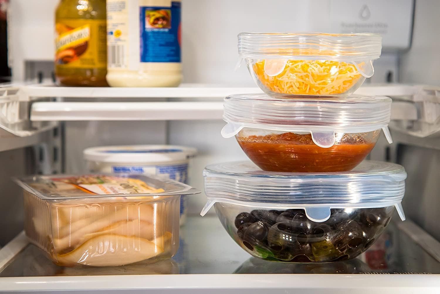 Transform your kitchen storage with KRUTEAZ's versatile silicone stretch lids set. This practical collection includes 6 transparent, stretchable covers in various sizes, designed to fit multiple containers - from bowls and plates to cups and jars. These durable food-grade silicone lids create an effective seal to maintain food freshness, making them perfect for storing leftovers, fruits, salads, sauces, and beverages. The flexible design allows easy stretching to accommodate different container shapes, while ensuring a secure fit to prevent leaks. Dishwasher-safe and reusable, these lids offer a practical solution for food storage. Each lid is crafted from premium-quality silicone material that's both sturdy and flexible, suitable for microwave use. The transparent design lets you easily identify contents without removing the cover. Whether you're storing half-cut fruits, keeping beverages fresh, or preserving leftover meals, these multipurpose lids provide a convenient storage solution for your kitchen needs.