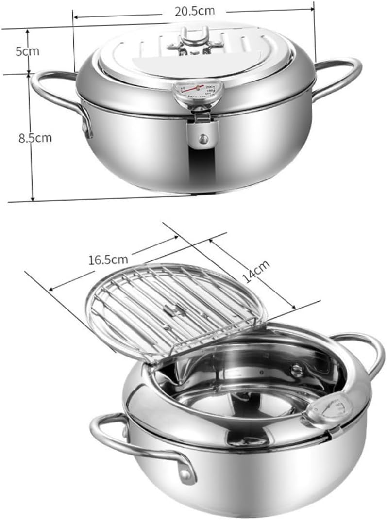 Package Include 1 fryer Characteristics -Material:Stainless steel frying pot for oil -Size:21.00X21.00X13.50cm/8.25X8.25X5.31in japanese fryer pot -Color:Silver deep fryer with oil filtration - Drain racks that the pan to keep food less greasy and crisper deep fry pot. - Works with all types of stovetops, gas, electric, glass and even flame grills stainless steel fried food pot. - Made of high grade stainless steel material that holds heat the idea of deep frying small deep fryer pot. - It is characterized by a sturdy and reliable texture, not easy to break, serving you for a long time deep fat fryer. - Outstanding workmanship, reasonable design, stable and practical, will bring you a multipurpose deep frying pot.Goods Descriptiongas deep fryer Features the stainless steel material, which has high durability, not easy to deform.pot for hot oil frying Fine workmanship, practicality.portable deep fryer pot This deep fryer is made of , which can withstand use