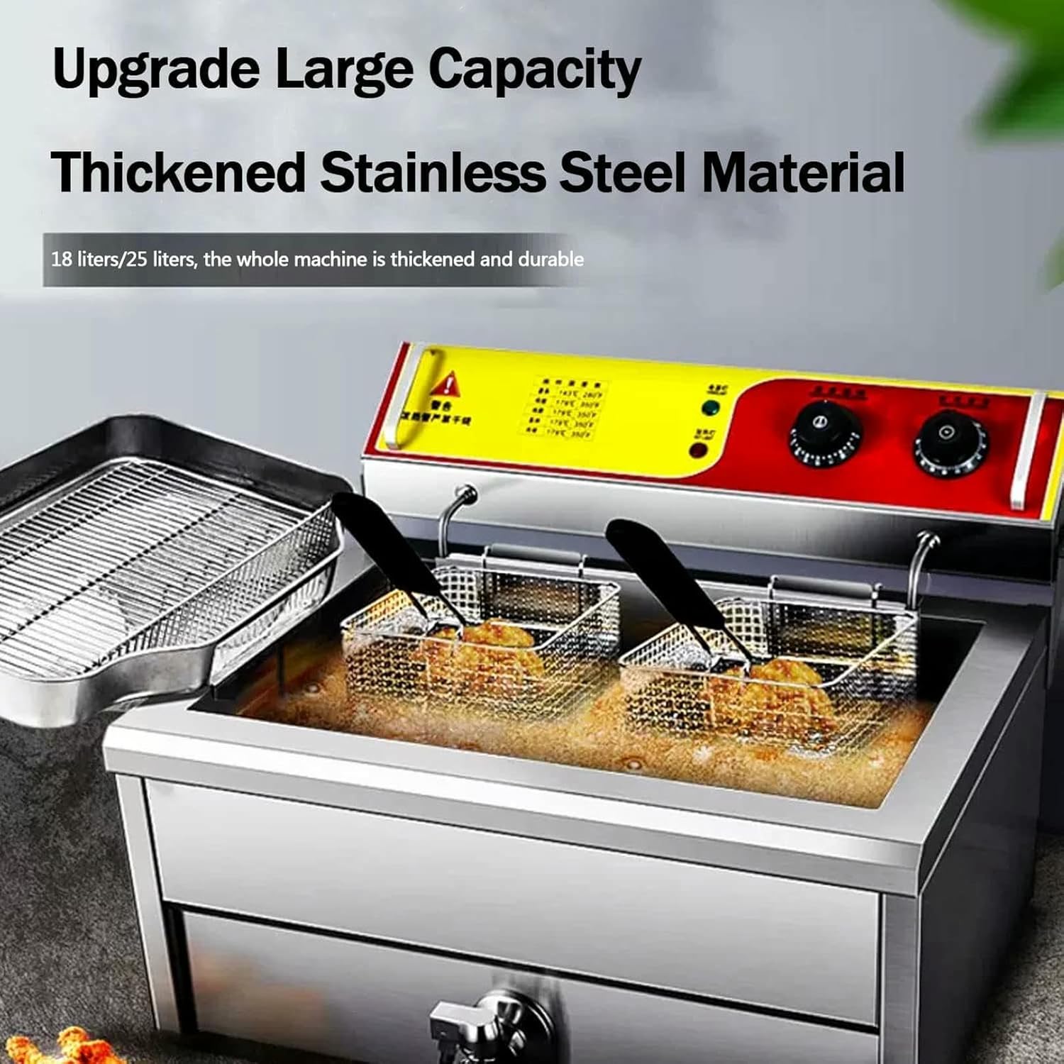 A Must-Have Deep Fat Fryer in Your Kitchen! You can enjoy fish & chips at home! With this Deep Fat Fryer, you could make more healthy and creative recipes by yourselves! The thermostat control allows you to set perfect temperature for different ingredients, such as fried doughnuts, fritters, chocolate bars, popcorn chicken, spring rolls, dumplings--the food lists is endless! And the frying basket is able to fry enough ingredients for family sharing for one time. It is time-saving and energy-saving.From Frozen or Fresh Whether you're a fan of artisanal hand-cut fries or the simplicity of frozen spuds, create a satisfying, golden-brown crisp in minutes. Leftovers falling flat? Give them a boost with a quick dip in the fryer for a better crunch than ever. Season with your favorite fresh or dried herbs and spis, or a simple sprinkle of salt and pepper..Product List: 1 x Deep Fryers (Does not include other)Warm Tips: - Please disconnect the power supply and wait the oil temperature drops before cleaning.Then use wet towel to clean the surfa and power wire. - To avoid sudden power failure, it is recommended that the fryer should be plugged in a wall socket rather than a wiring plate type socket. - Please make sure that add oil to the tank before the fryer is plugged into the socket and that power is switched on. - This professional deep fryer with oil cylinder and basket, Please check the size and power carefully.