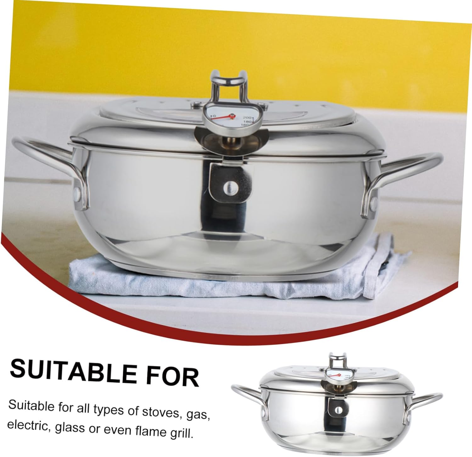 Package Include 1 fryer 1 x food clip Characteristics - Size: About 21.00X21.00X13.50cm/ 8.25X8.25X5.31inch Portable Frying Pan. - Food clip size: 21cm/ 8.26 inch (length) Stainless Steel Fryer. - Color: Silver Controllable Temperature Fryer. - Material: Stainless steel Deep Fryers Frying Pan. - Suitable for all of stoves, gas, electric, glass or even flame grill Fry Pan with Thermometer. - Made of stainless steel material which retains heat idea for deep-frying. Deep Fryer Pan - It can be used not only for tempura, but also variety of fried foods Nonstick Fryer. - Comes with a thermometer for observation at any time Tempura Frying Pot. - Oil drainer rack that hangs from the pot, makes foods less oily and more crispy Japanese Style Fryer.Goods DescriptionDeep Fryers Frying Pan With a creative design and functionality.Controllable Temperature Fryer Portable design, easy to carry for anywhere.Frying Pot This is a Japanese style frying pot, which is made of food grade stainless steel for better health and durability, non-stick and easy to clean