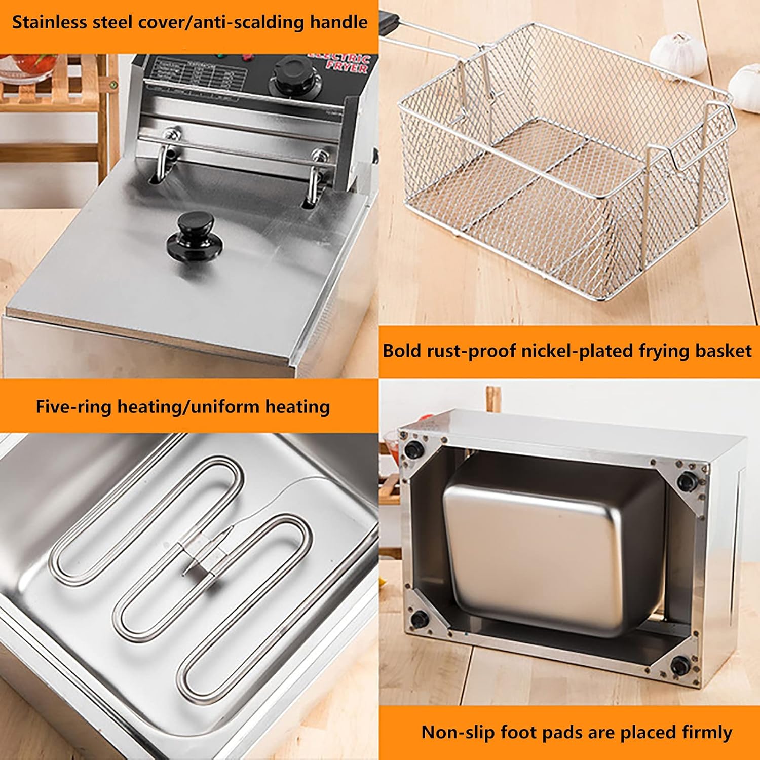 Product name: electric fryer Model: HO-Z Voltage: 220 (V) Power: 2.5 (kw) Oil temperature control range: 60-200℃ Product use: frying equipment Net weight: 4 (kg) Scope of application: tea restaurant equipment, meat processing plant equipment, seasoning processing plant equipment, frozen food plant equipment, bakery equipment, cake room equipment, Chinese restaurant equipment, snack food factory equipment, beverage shop equipment, western restaurant equipment, fruit and vegetable processing Factory equipment, coffee shop equipment Specifications: single cylinder