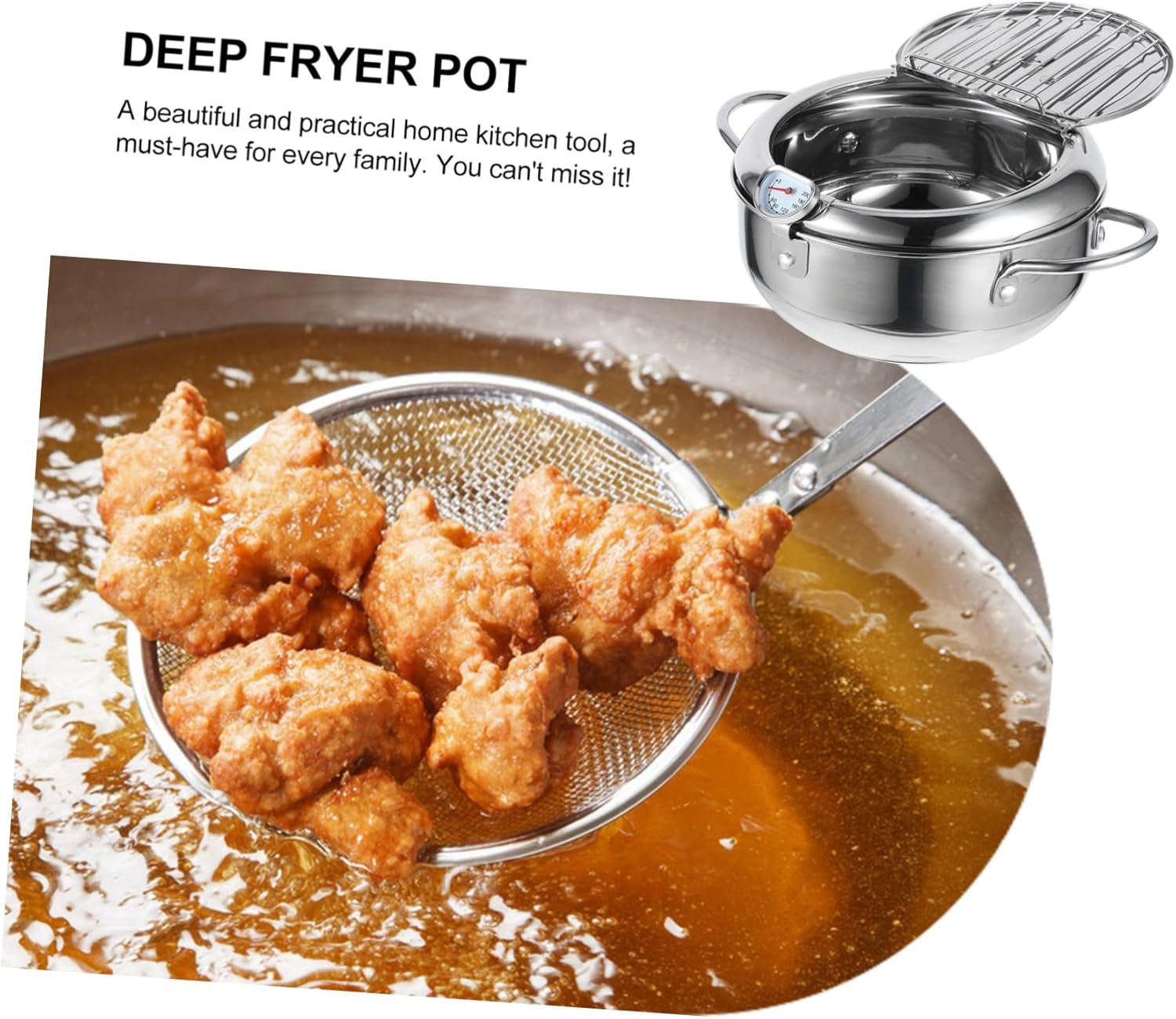 Package List 1 x fryer Characteristics -Color:As Shown Portable Frying Pan -Material: stainless steel Tempura Frying Pot -Size: 31.00X20.00X12.00cm/12.18X7.86X4.72in Tempura Deep Fryer -The surface is smooth, without burrs, and it is to use and not hurt your hands Nonstick Fryer. -A beautiful and home kitchen tool, a must-have for every family. You can't miss it! Small Deep Fry Pan -Small size, easy to use and carry for simple and convenient operation Fry Pan with Drainer. -Made of materials, beautiful and , and Tempura Small Pan. -Suitable for many occasions, beautiful design, simple and generous, beautiful and Deep Fryer Pan.Goods DescriptionSmall Deep Fry Pan It is one of your choices.Stainless Steel Frying Pot Are you looking for a and Japanese style mini frying pan for your food? Are you looking for a sturdy and trustworthy multifunctional mini frying pan? If so, please look no further! Our induction cooker mini non-stick fryer must meet your needs