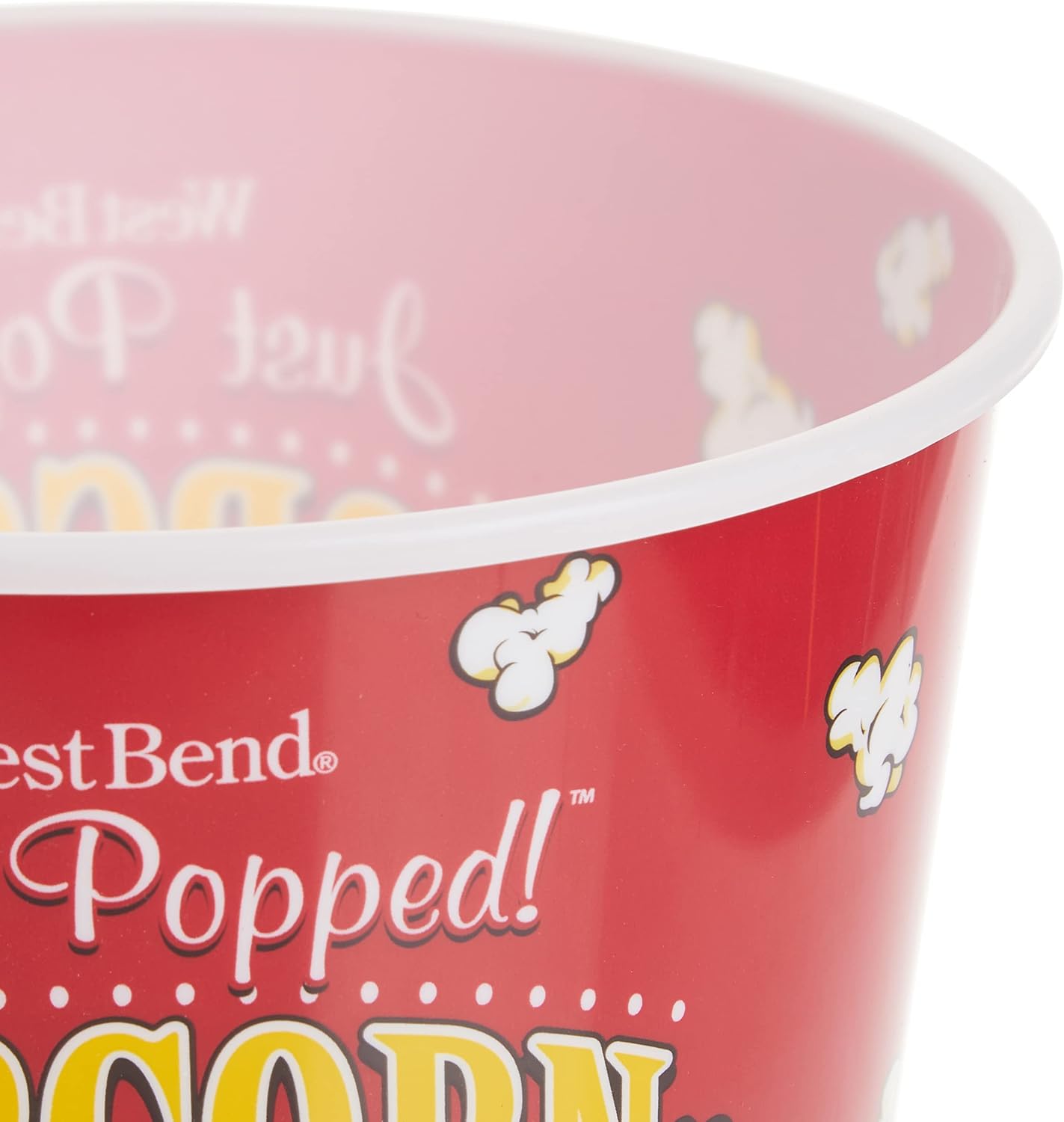 The West Bend 3-Qt. Popcorn bucket is the perfect accessory for movie nights at home! Holds 3 quarts of popped popcorn, and fits perfectly under West Bend hot air popcorn poppers.