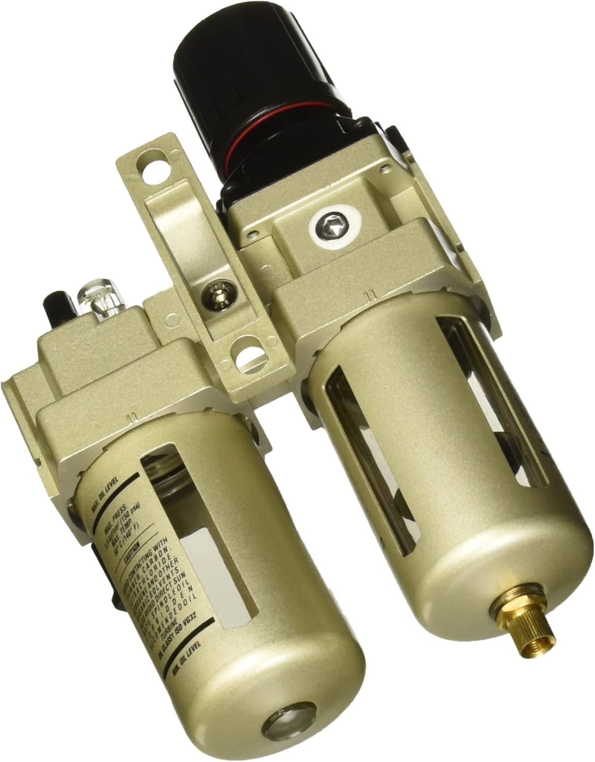 -Air filter regulator and lubricator 1/2 "NPT Urrea -Air lubricator with 1/2" filter, flow 3000 l / min with regulator and pressure gauge, pressure range I 1.1 - 18.7 lbs / cm2 -Self-priming valve, lubricity 40cc, spray 4.4 fl oz / min