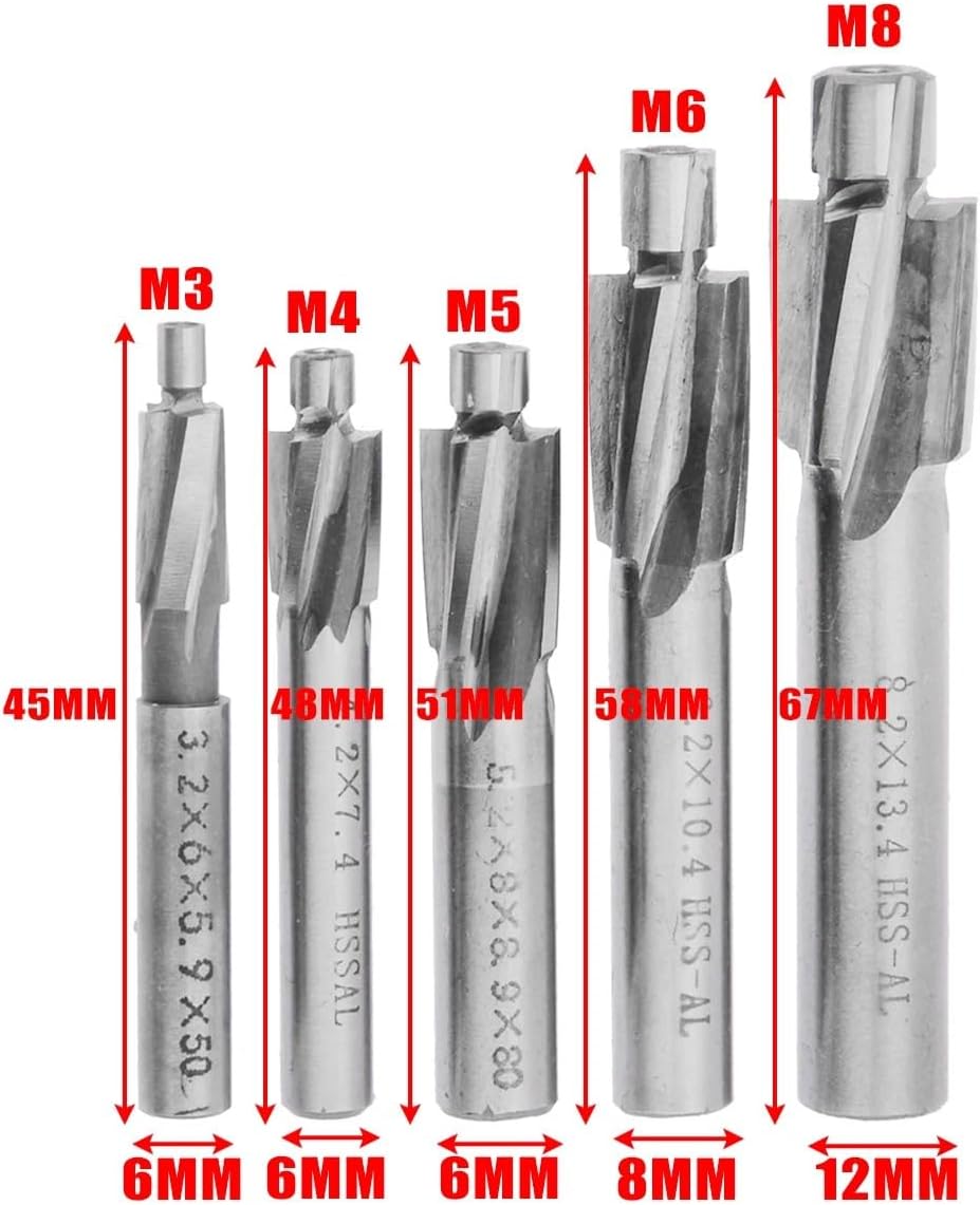 end mill5Pcs M3-M8 Counterbore Milling Cutter Material: HSS-ALSuitable For: Machining of low carbon steel and non ferrous materialsPackage Included:5 x End Mill Cutter
