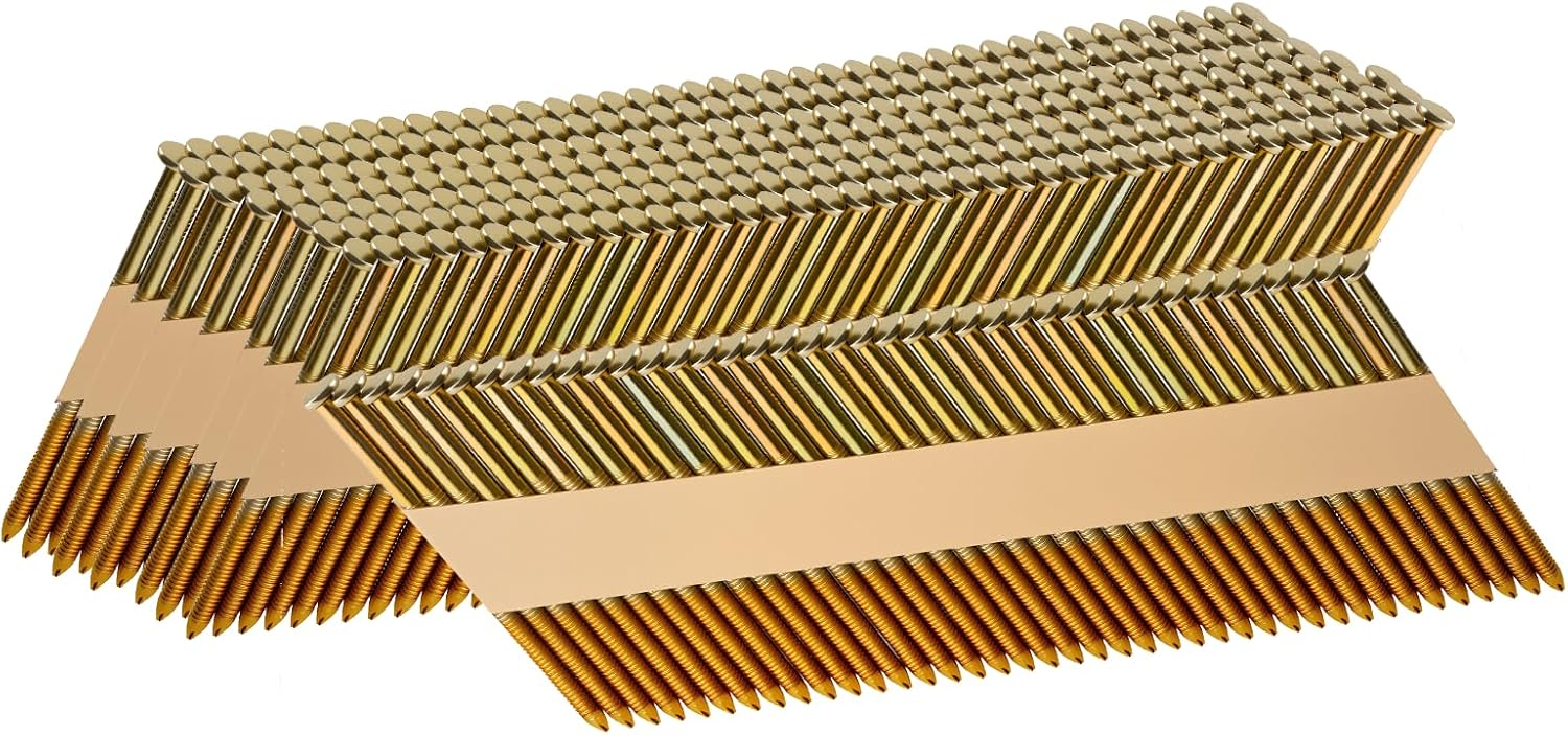 SITLDY 30-34 Degree Framing Nails 3-1/2"X.131" Ring Shank 1000 Count, D Head Electro-Galvanized Paper Tape Strip Nails, for 30 to 34 Degree Framing Nailer