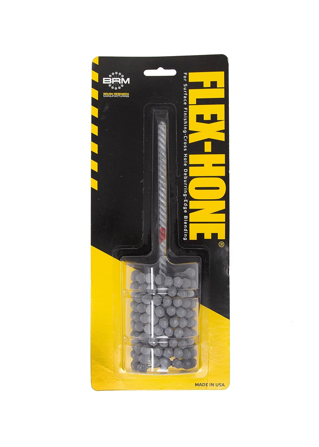 The FLEX-HONE® tool was originally created by Brush Research Manufacturing to deglaze cylinder walls in automotive applications. Brush Research embraced the benefits of a plateau finish and pioneered the concept of plateau honing culminating in the introduction of the FLEX-HONE tool in 1972. The FLEX-HONE has gained many nicknames over the years and including ball hone, ball style hone, flexihone, dingleberry hone, bead brush, glaze breaker and glaze buster. Flexible honing with the FLEX-HONE tool produces an oil holding cross hatch pattern and a true plateau finish free of cut, torn and folded metal. Any type or size of cylinder can benefit from the FLEX-HONE®. These abrasive bead style brushes are produced in standard diameters from 4mm to 36 inches. Nine abrasive types are offered including Silicon Carbide, Aluminum Oxide, Boron Carbide, Z-Grain, Leviagted Alumina, CBN and Diamond allowing the tool to be tailored to finish any base material. A choice of 11 different grit selections are available for precise control of finish parameters. The elimination of peaks results in rapid ring seating, better oil control, reduced seepage in hydraulic and pneumatic applications and provides better seal performance and longer seal life. Successful applications include firearm chambers, shotgun barrels, musical instruments, combustion chambers, air compressors, pumps, valve bodies, valve guides, brake cylinders, wheel cylinders and the list goes on and on. FLEX-HONE® tools are also very effective for deburring cross drilled holes, port radiusing and edge blending. Because of its unique construction, the FLEX-HONE is self-centering, self-aligning, and self-compensating for wear so it does not require an elaborate set-up or special training. Deburring can be effectively automated and combined in the machining process to allow a complete cylinder finish in one operation or it can be employed as a secondary operation with equal results.