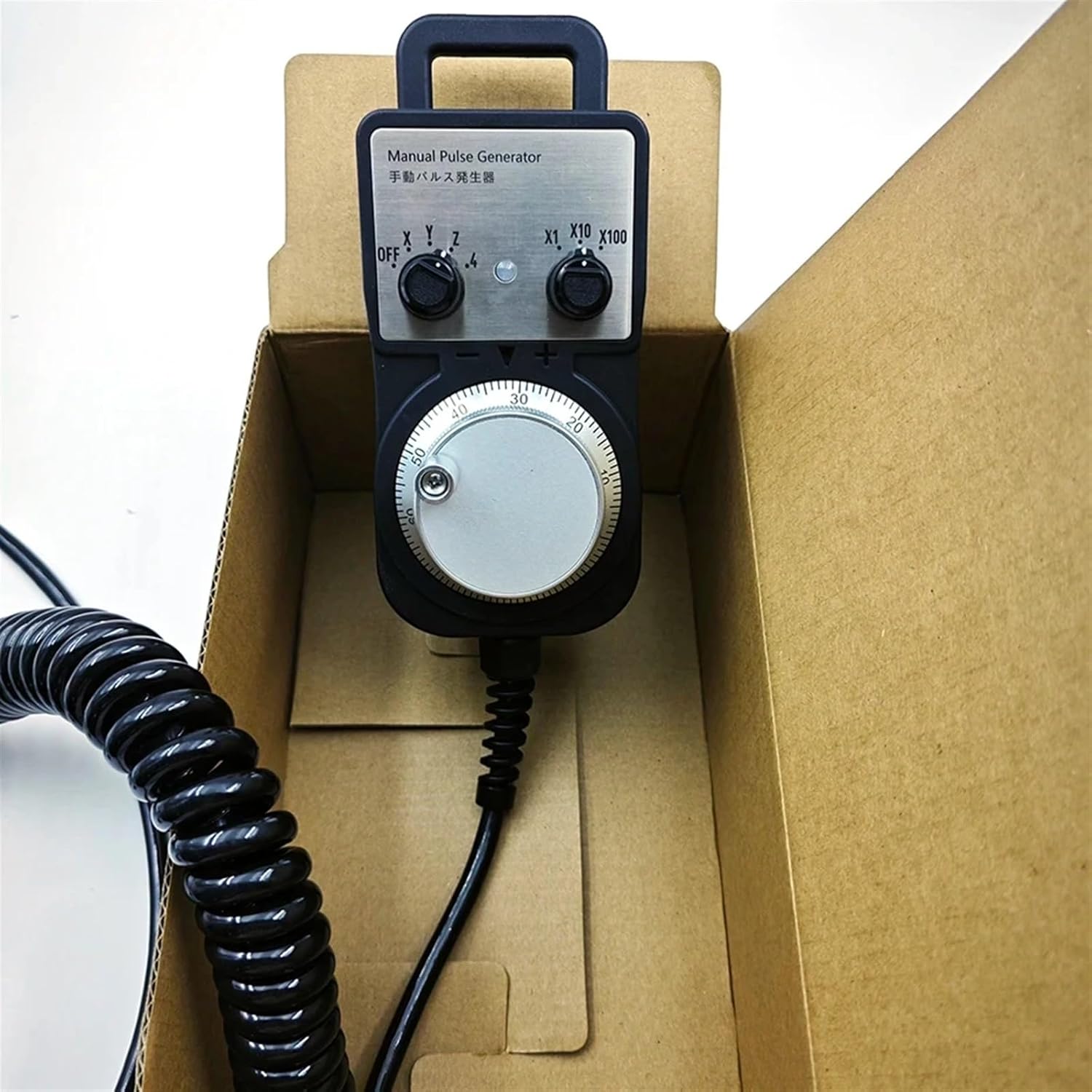Pulse Generators1.The handheld controller MPG Pendant with x1, x10, x100 selectable, You are bidding one complete unit of the MPG pendant with Emergency stop for 4 axis machine, it equipped with our popular machined MPG unit with 4 axis and scale selector, LED indicator also send feedback from the machine to user about the status of the unit.2.All Wiring isolated from MPG unit and provide a easy to install wiring diagram, it suit both commercial machine as a replacement jog control unit or other computer based controller. Which add great control flexibility to the system.Specification:1. x1, x10, x100 switch2. X,Y,Z,4th axis selector switch3. LED indicator4. No-Emergency stop5. professional chassis6. 6ft extendable shielded cable cord7. Magnetic base holder can place anywhere on the machine steel surface8. Required 5V+, 150mA, power for MPG9. Phase output is A ,/A and B,/B;10. TTL output, drive capability +-20mA;11. Support any system12.Wiring:User can wire this unit to the system with easy.NumberLine ColorSignal1 BlackGND2 RedVCC3 YellowA 4 WhiteB 5 PinkA / (difference)6 GreenB / (difference)7 Light purpleL-8 TransparentL+9 PurpleCOM10Transparent/BlackX10011Blue/BlackX1012Green/BlackX113Grey6 (Optional)14Red/Black5 (Optional)15Blue4 16LightblueZ 17OrangeY 18BrownX Shielded