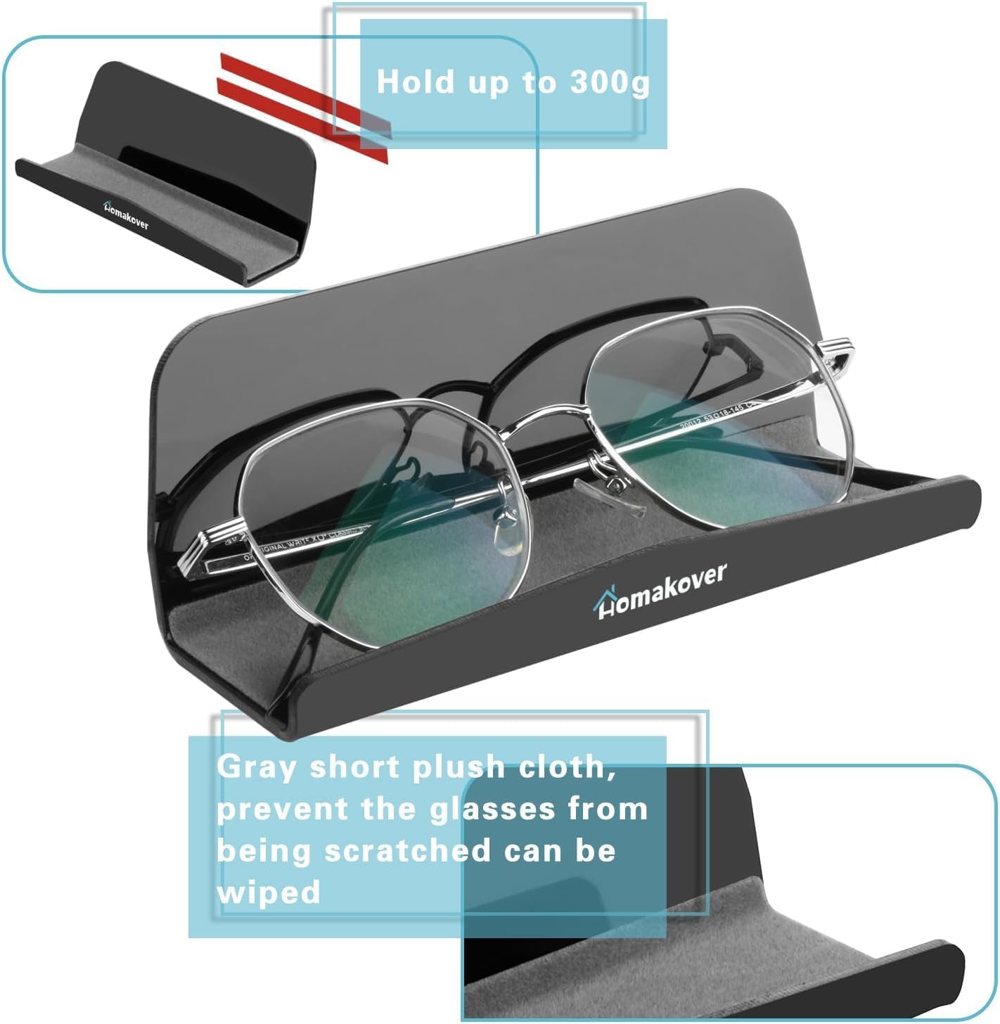 Gray short plush cloth inside, prevent the glasses and mobile from being scratched.