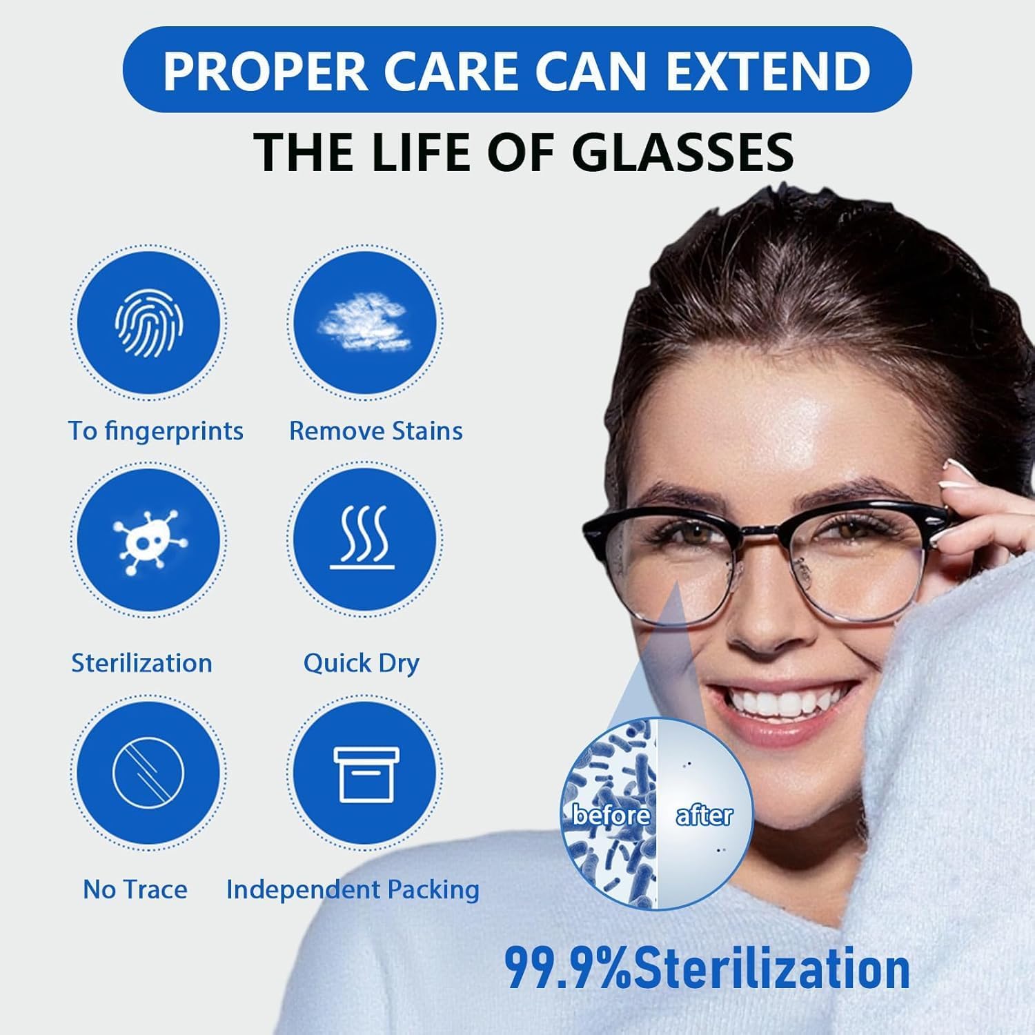 100 Tablets Wet Glasses Wipes, Lens Cleaning Wipes, Individually Packaged, Anti-Fog Cloth for Smartphones & Cameras, Screens