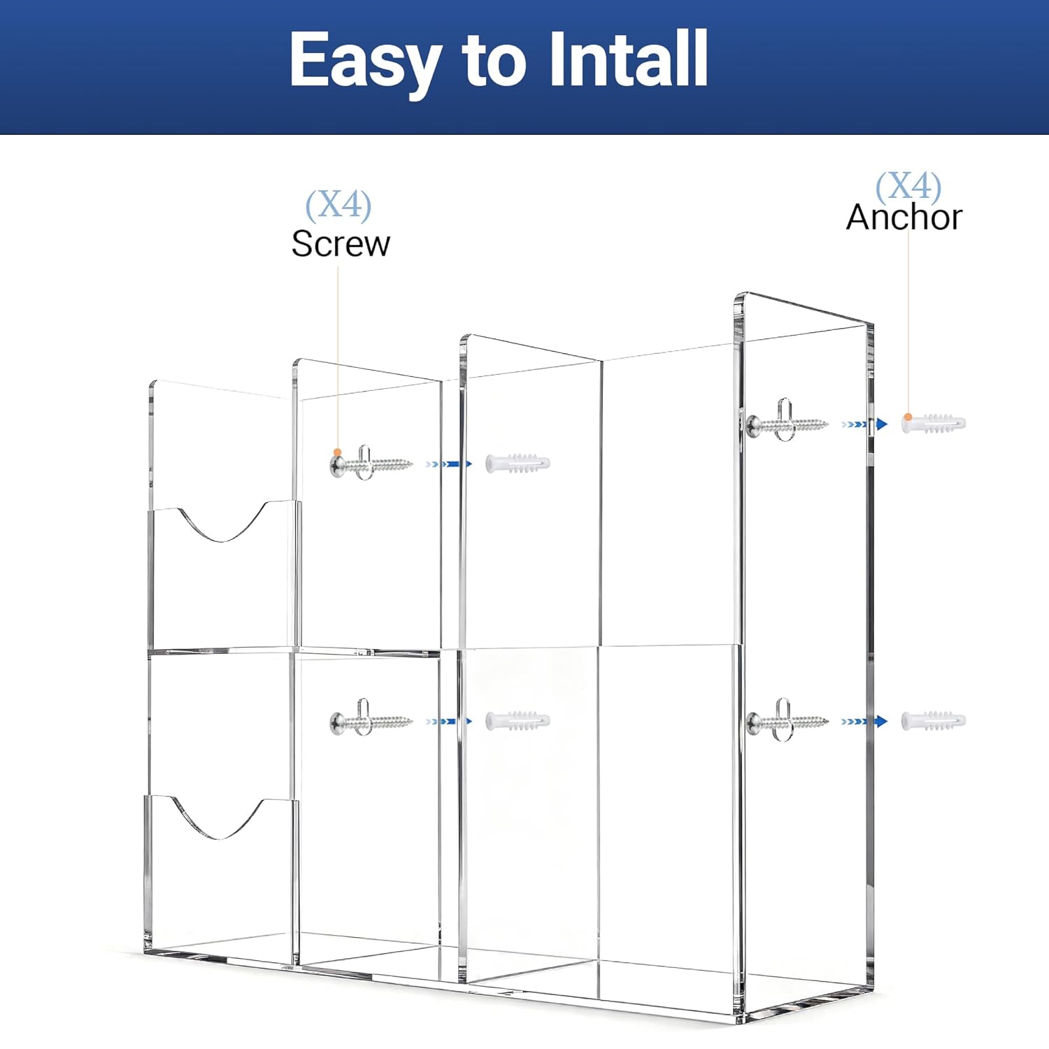 Keep your sterilization pouches neatly organized and easily accessible with the Aphbrada Clear Acrylic Sterilization Pouch Dispenser . Designed with 4 divided compartments, this durable, shatter-resistant acrylic rack fits multiple sizes of self-sealing pouches, from small to large, ensuring a tidy and efficient workspace. The dispenser can be wall-mounted with included screws or placed on countertops with 4 anti-slip rubber pads, providing stability and flexibility in clinics, dental offices, labs, or home workspaces. Its transparent design lets you instantly see pouch quantities, saving time on restocking, while maintaining a hygienic and professional environment. Idear for busy settings where organization and cleanliness are a priority.