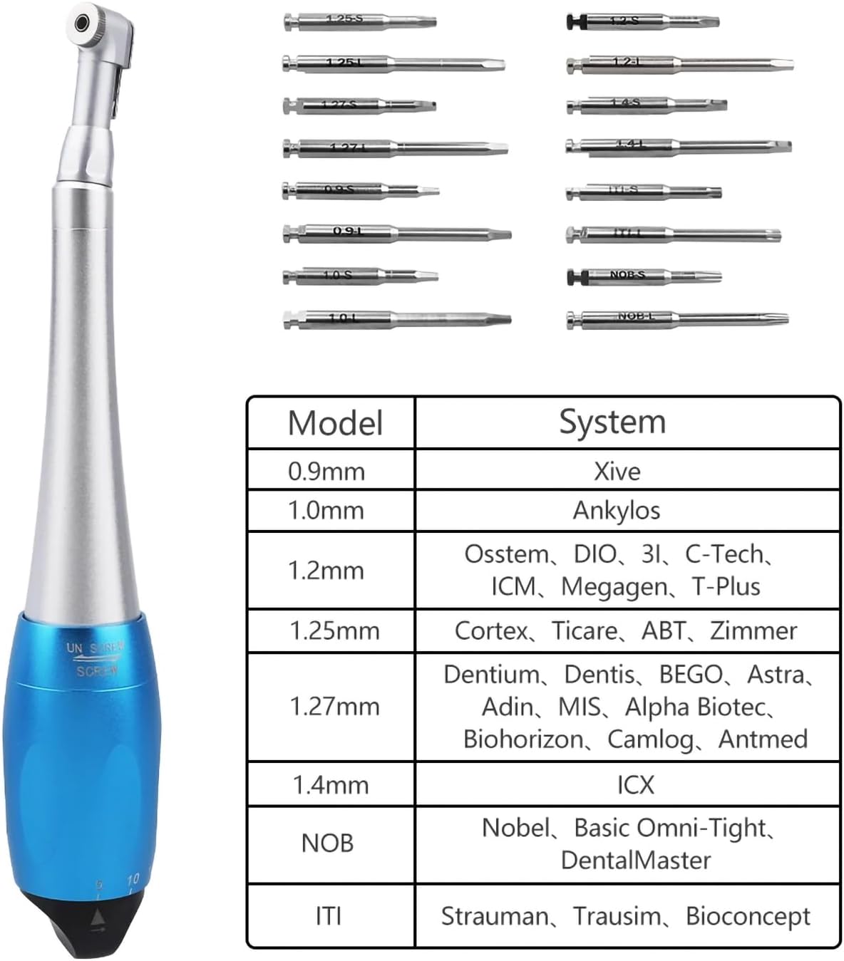 Universal Implant Torque with 16pcs Drivers Wrench Latch Handpiece 5 to 35 N.cm Wrench Tools Design of metal plate lock ·Has 7 types of torque, including 5/10/15/20/25/30/35N.cm ·Detachable machine head, convenient for deep cleaning. ·Slender handle design for comfortable grip Mini push-type head / more convenient for system operation The optional force depends on the requests Slip when the force is greater than the demands in order to protect the substrate. comes with two handpieces head for replacement Product List: 1 Replacement head 1 Head wrench 16 pcs screwdrivers 1 Handpiece