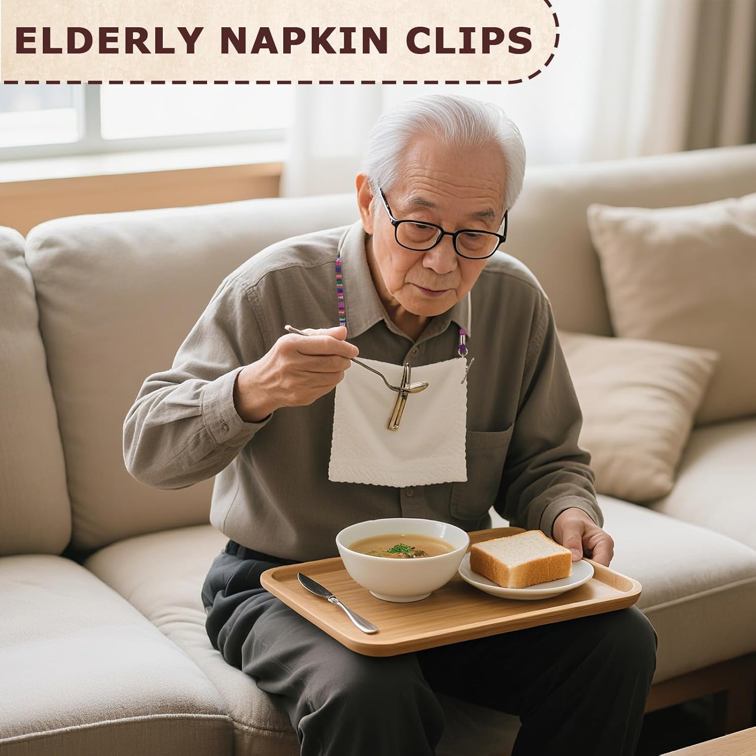 Keep meals mess-free and organized with our 6PCS Folk Style Napkin Clips! These adjustable clips, featuring charming folk patterns, secure adult bibs, napkins, and dental bibs—plus a handy organizer bag for easy storage. Perfect for seniors, dental use, and daily dining.