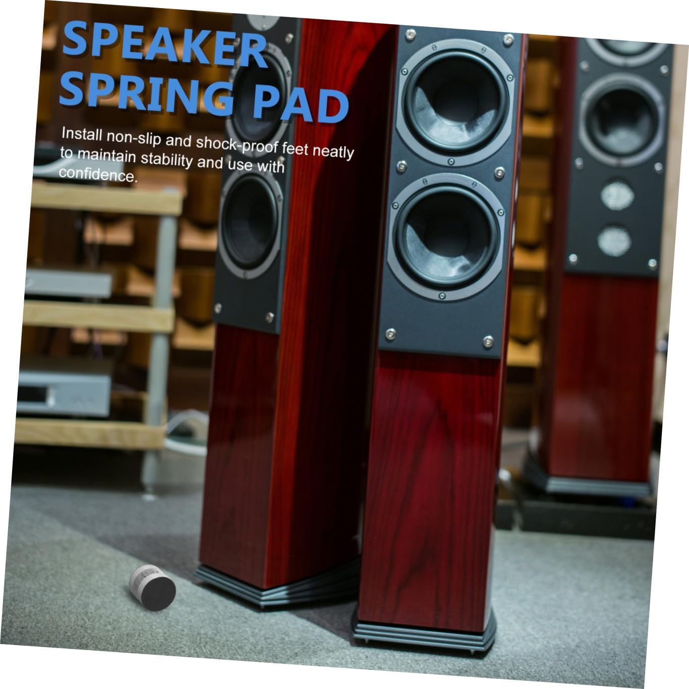Package List 4 x spring pads Characteristics -Material: Aluminium alloy, rubber home floorstanding speakers vibration pads -Take it with one hand, light and portable, easy to install, not time-consuming and labor-intensive speaker vibration pads. - workmanship practicality and durability, and will not be easily damaged speaker anti-vibration pads. -The edges are smooth, everything is covered, the corners are perfect, and you won't get hurt when hit pads for floor standing speakers. -Put it anywhere in the house, as long as you can get a better experience speaker pads. -Better listening experience, to ensure that you experience the full range of high-fidelity speakers Speaker Spring Pad.Goods Informationstudio pads Are you looking for professional and speaker spring pads? Are you looking for a sturdy speaker spring pad that can provide you with a comfortable experience? If your answer is yes, please take at this product! Our professional speaker spring pads can meet your needs.speaker spikes pads This is one of your