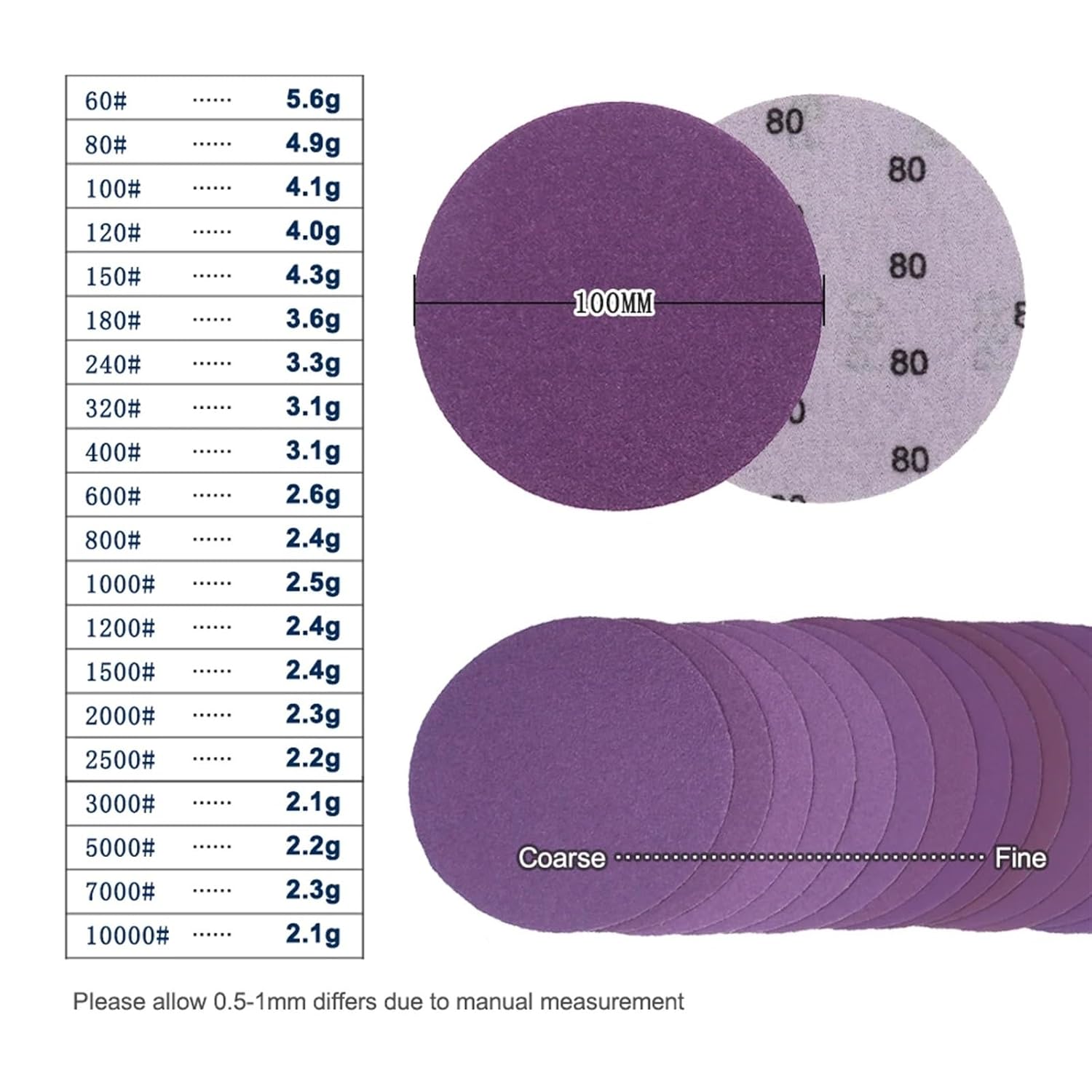 Abrasive Brushes10 Piece Sanding Disc 4 Inch 60-10000 Grit Hook Loop Flocking Sandpaper 100mm Wet DryThe grits of the sandpaper are printed on the back for easy identification==========Type : Sanding PaperSize : 4 Inch 100MMBacking : Hook LoopPackage : 10 Pcs Sanding Paper