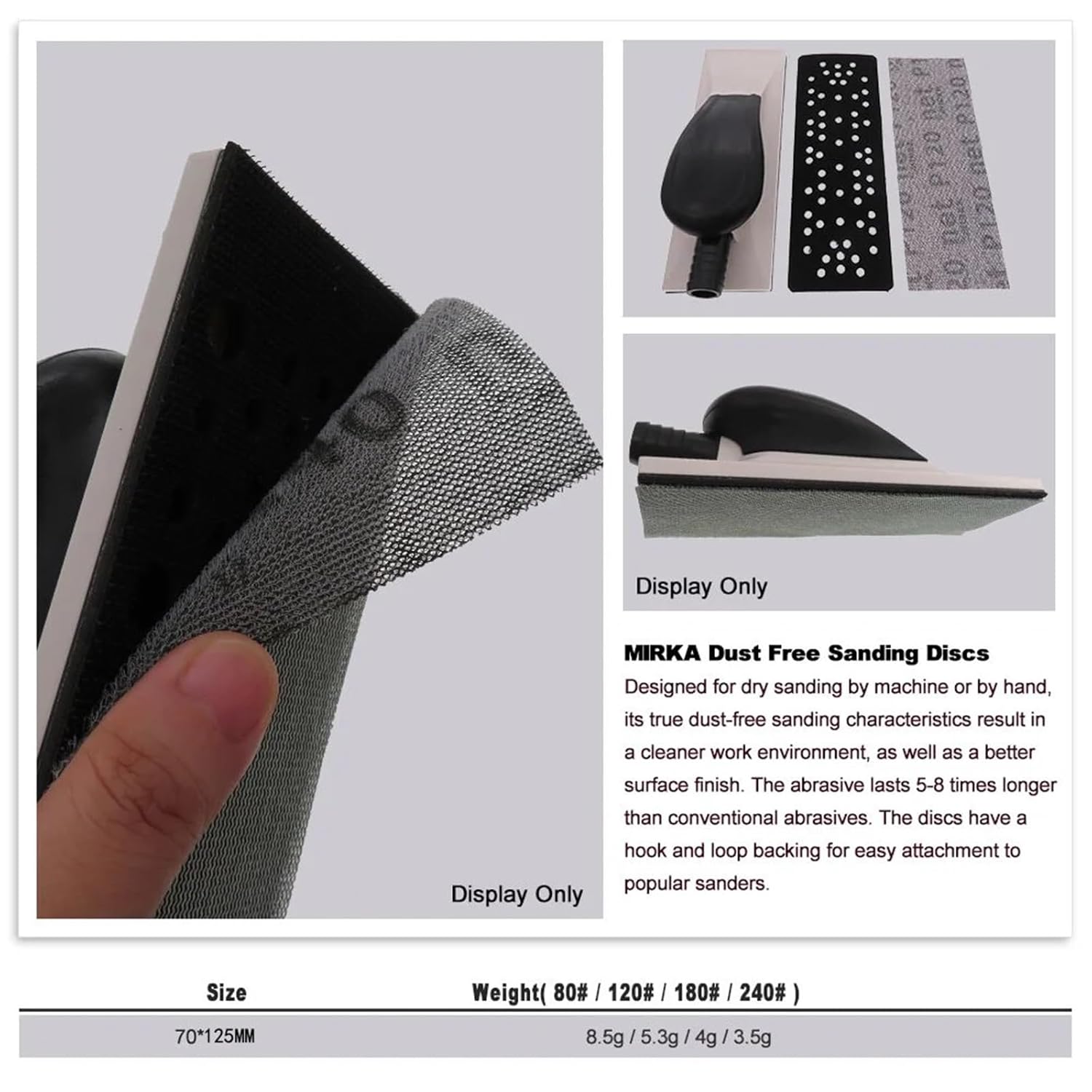 Abrasive BrushesModel Number : 125*70mmOrigin : Mainland ChinaType : Sanding PaperSize : 125*70mmGrits : 80/120/180/240/320 GritColor : GreyCoating : Closed