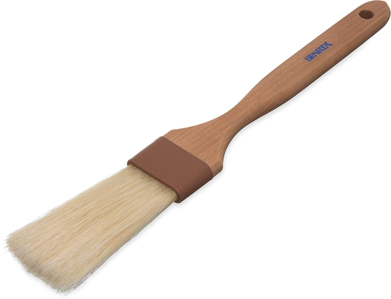 Elevate your kitchen tools with the SPARTA 4039800 Flat Nylon Bristle Basting Brush, a professional-grade essential trusted by top chefs. Crafted for optimal performance and lasting durability, this brush features a lacquered hardwood handle and durable reinforcement, delivering both comfort and control during use. The soft, flat nylon bristles are gentle enough for delicate pastries yet strong enough to handle glazes, sauces, and marinades. With a high fluid-retaining capacity, the brush ensures smooth, even application every time. For added safety and durability, the bristles are epoxy-set into the ferrule, preventing loose bristles and eliminating air pockets. Whether you're in a commercial kitchen or baking at home, this is one of the finest basting brushes of its kind—offering the perfect balance of precision, softness, and strength for any culinary task.