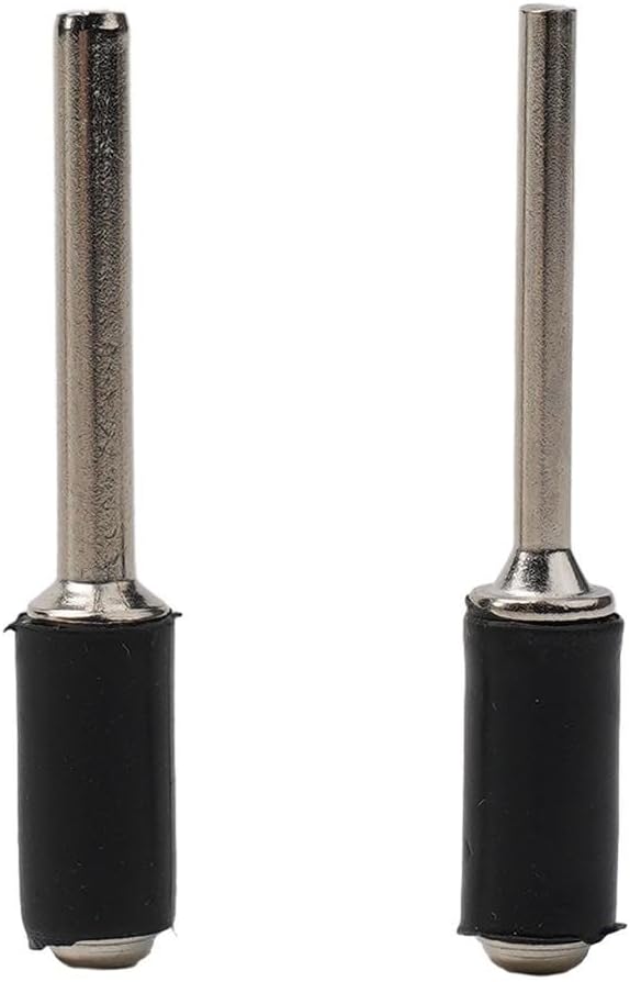 Product description Features: *Rubber head, antiskid material.*Used to hold sand drum or sand band to polish sand, shape, groove, finish soft, hard woods, fiberglass more.*1/10"(2.35mm) or 1/8"(3.17mm) shank size.*For professional studio use or home use.*Suitable for most rotary tools.*Product no include sandpaper.Specifications:Product name: Sanding Rubber Mandrels SetMaterial: Rubber, MetalColor: Black, SilverShank: 3mm(1/8''), 2.35mm(1/10'')Diameter: 12.7mm(1/2''), 9.5mm(3/8''), .35mm(1/4'')Suitable for: hold sand drum or sand band to polish sand, shape, groove, finish soft, hard woods, fiberglass more.Quantity: 6pcs setPackage Included:× Sanding Rubber Mandrels Manufacturer Contact Information no